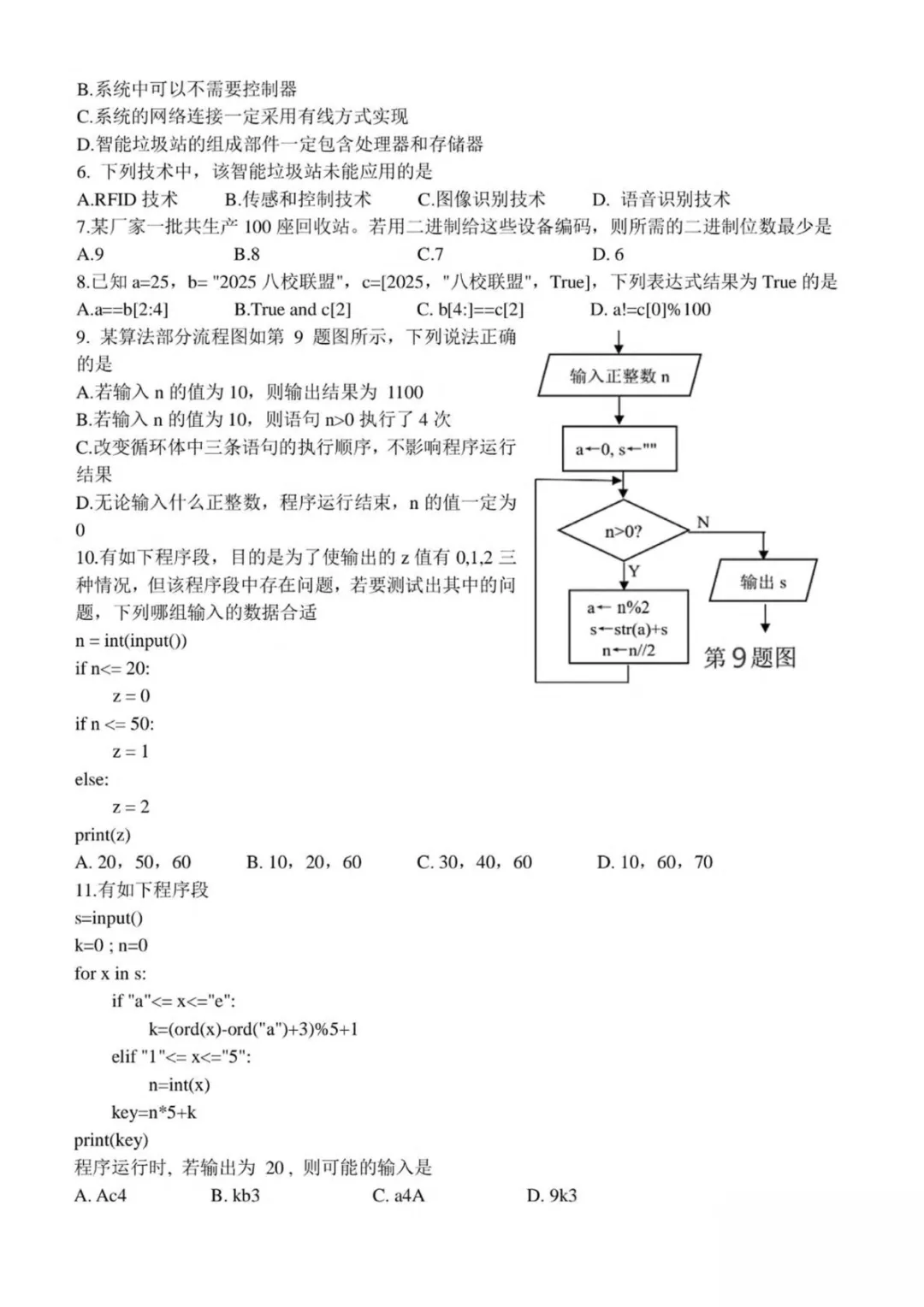【可下载】浙江省嘉兴市八校2024-2025学年高二下学期4月期中联考信息技术试卷(PDF版,含答案)