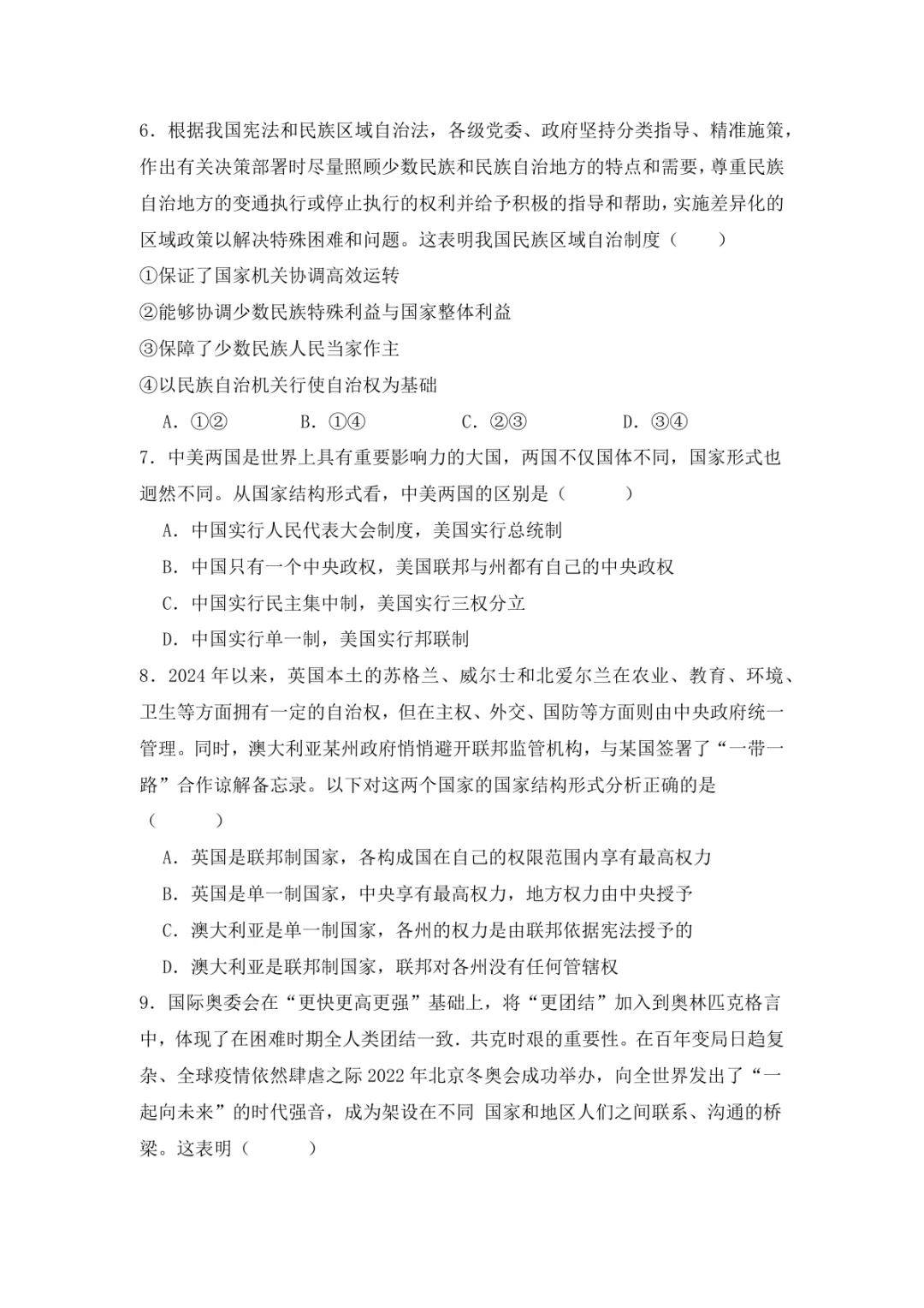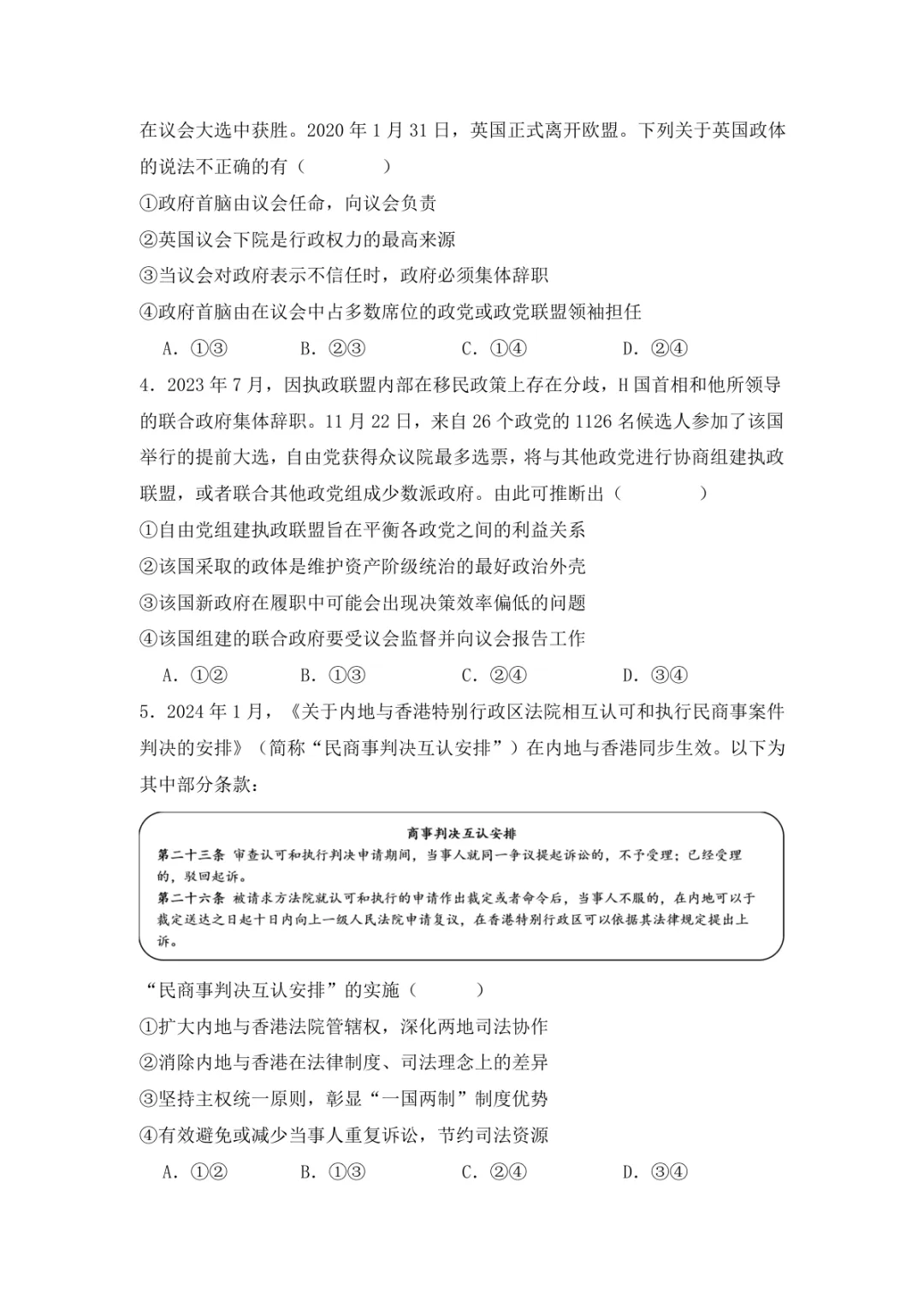 【可下载】福建省福州第一中学2024-2025学年高二下学期第三学段模块考试思想政治试题(含答案)
