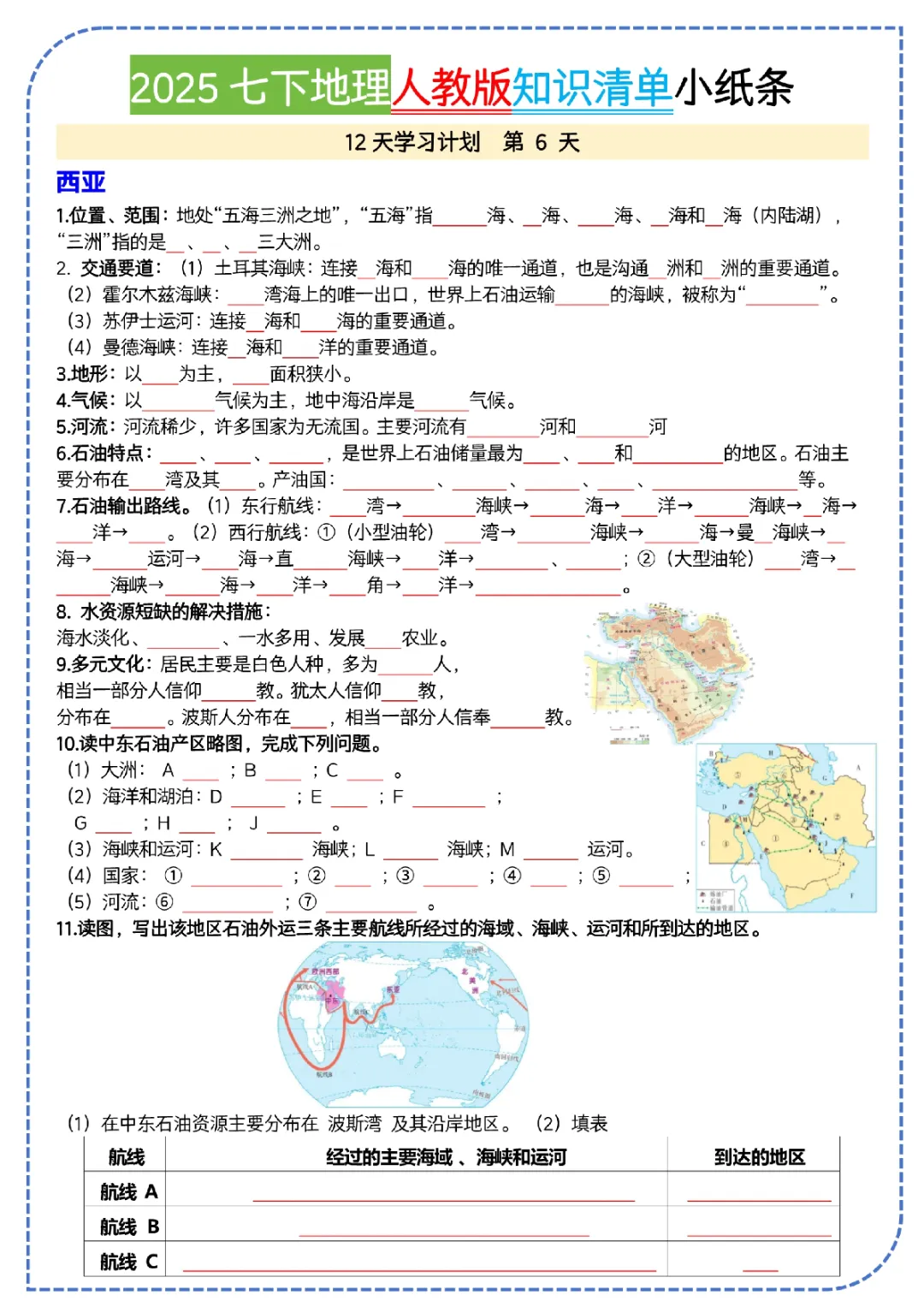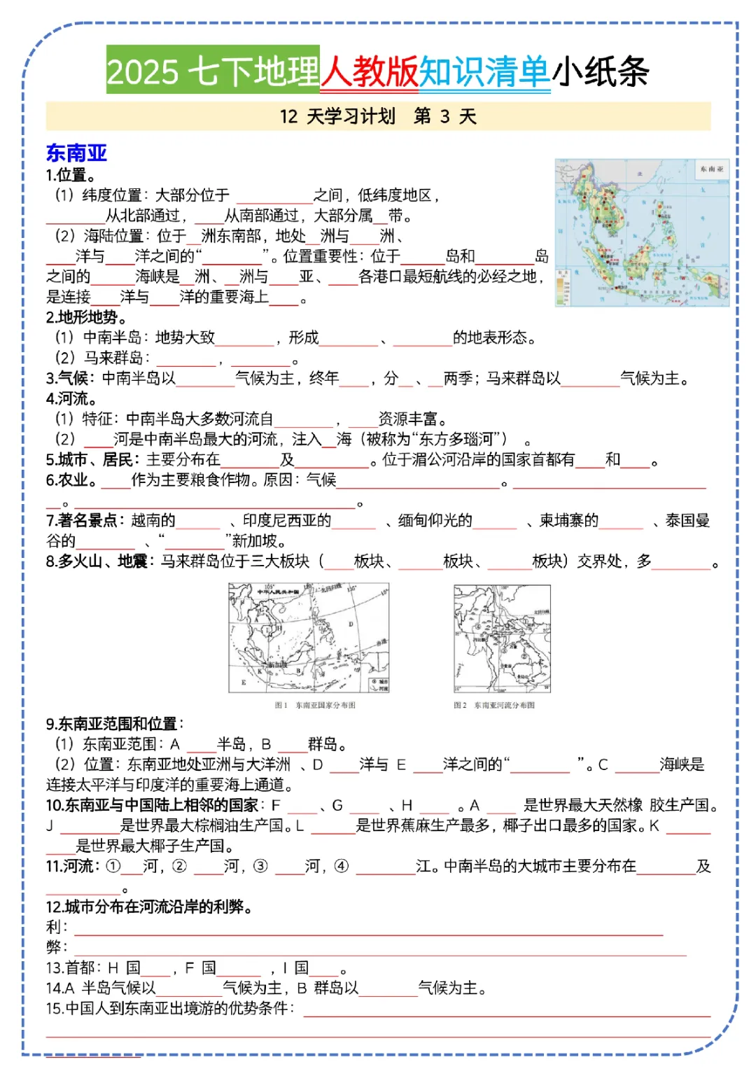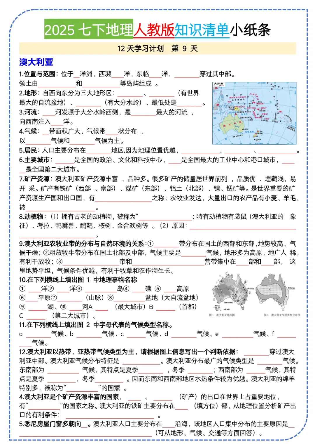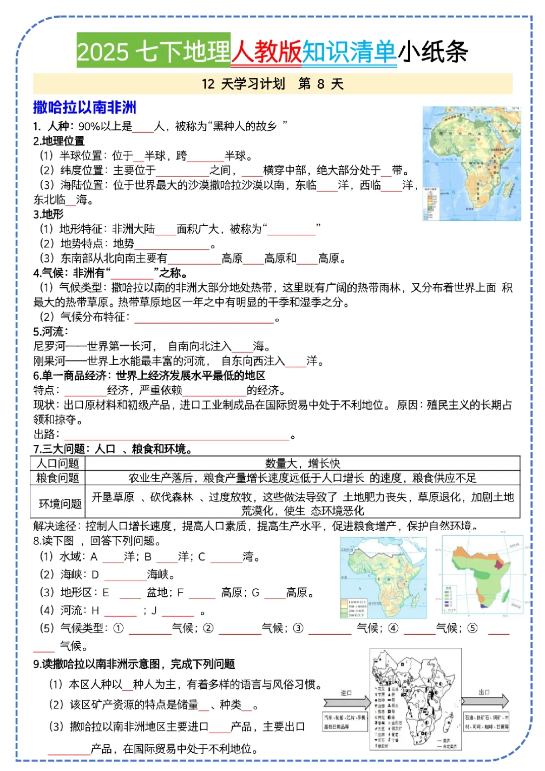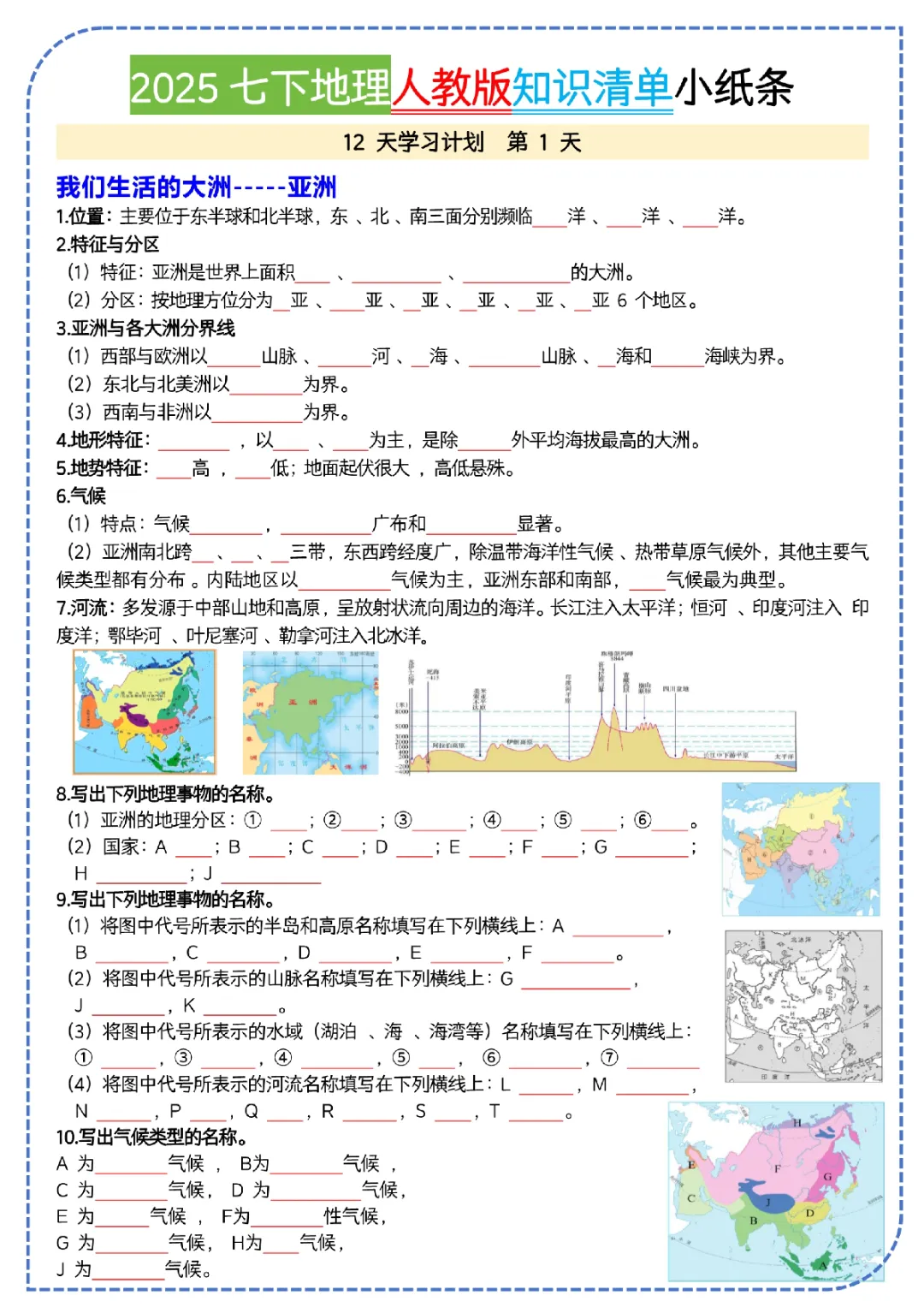 2026初一下册地理人教版,知识清单(可打印)
