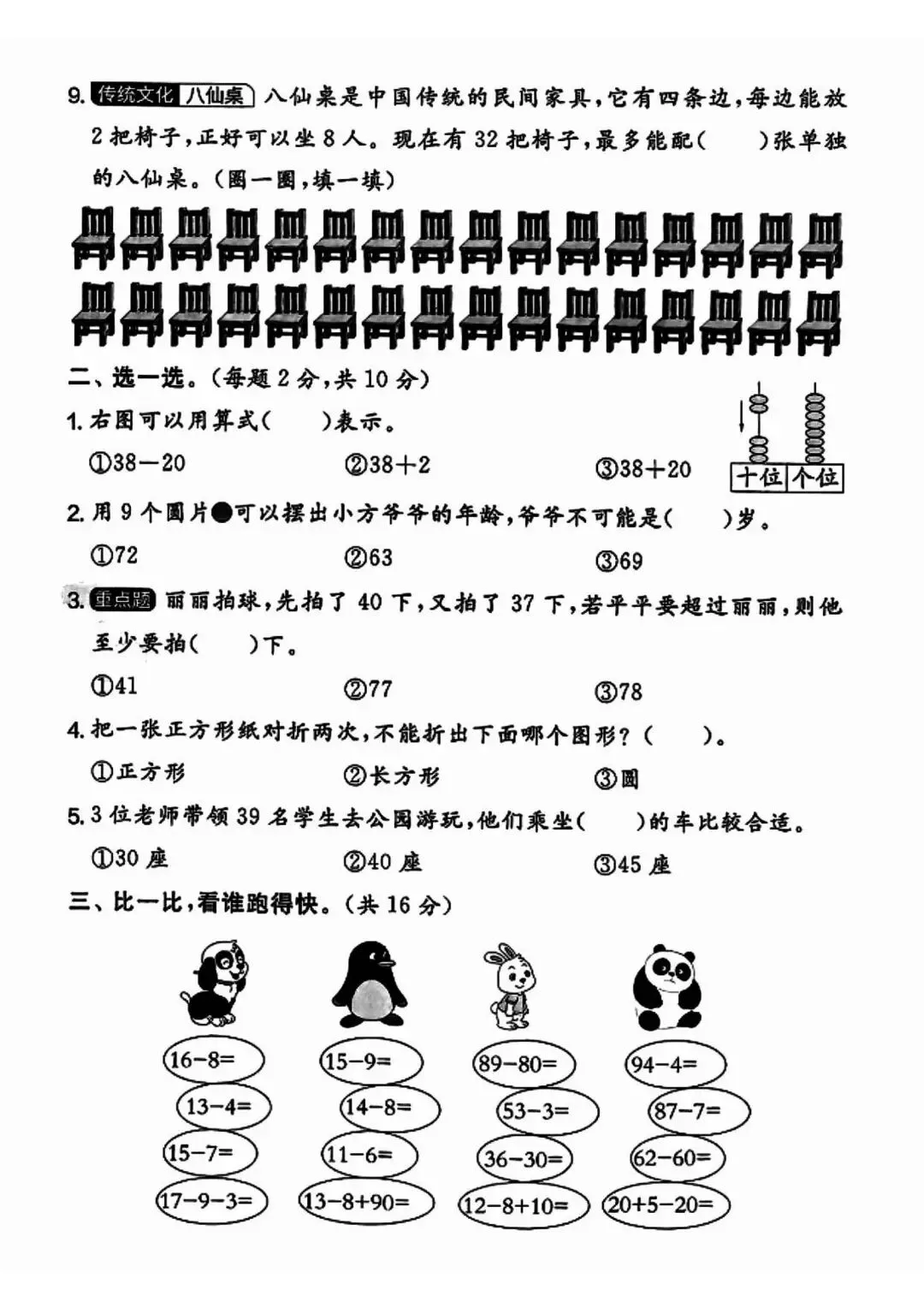 该资料全面覆盖计算、填空、选择、解决问题,加入补砖问题、百数表运用等高频考点,题型更贴近真实考试,适合模拟练习、熟悉考试节奏。