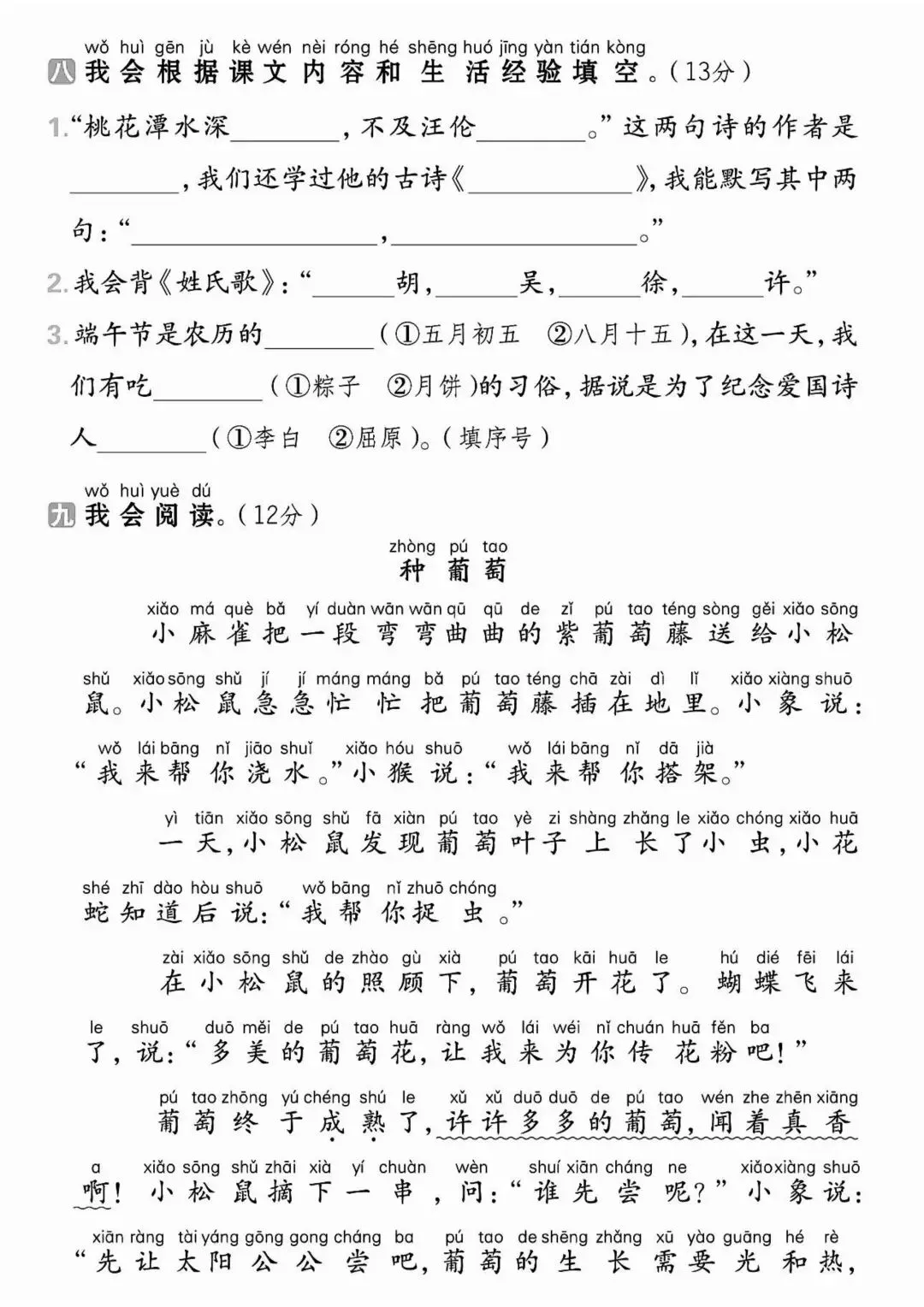《一下语文期中检测卷2》