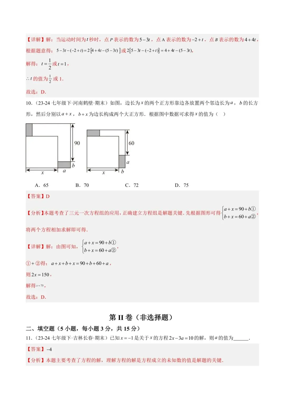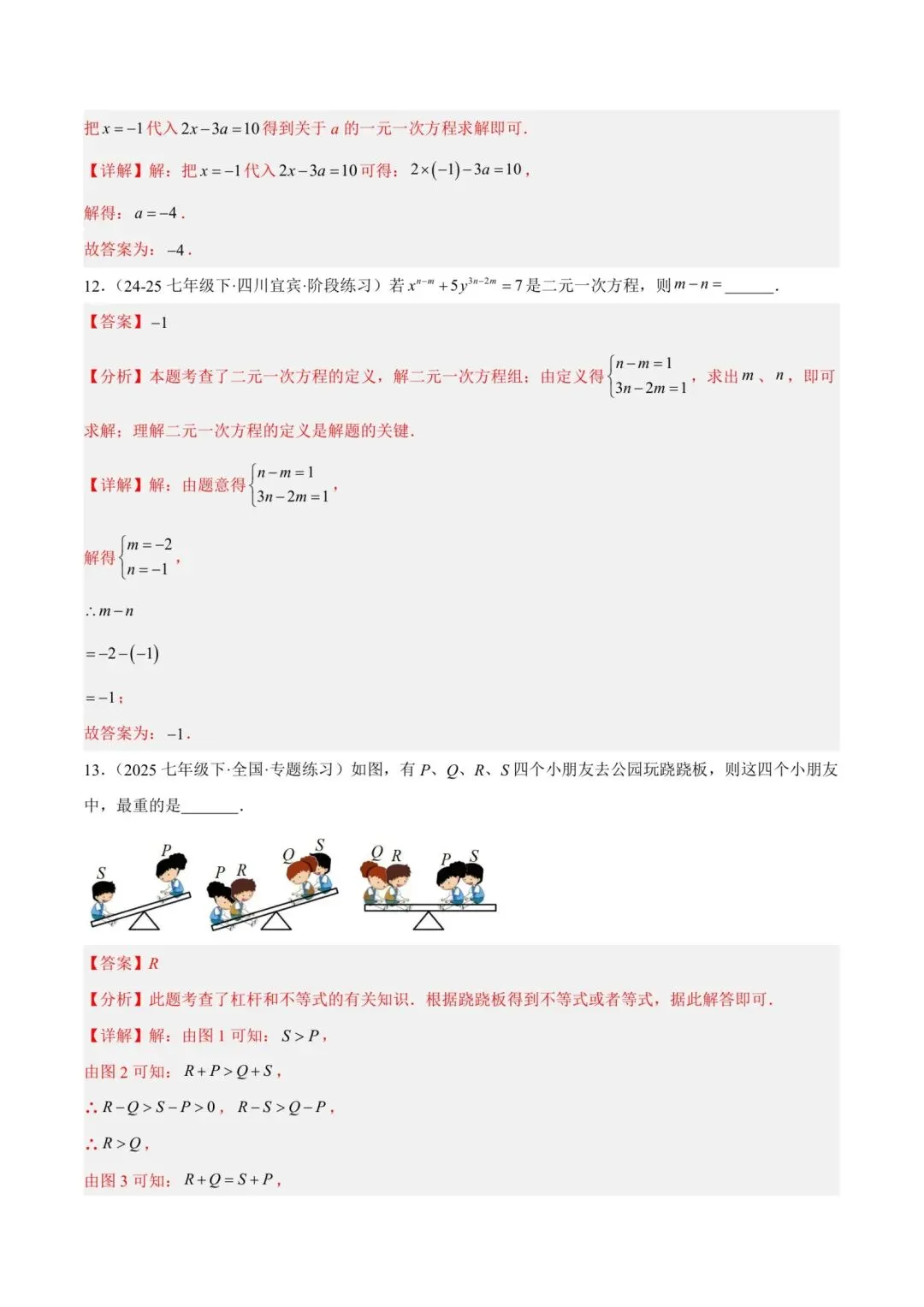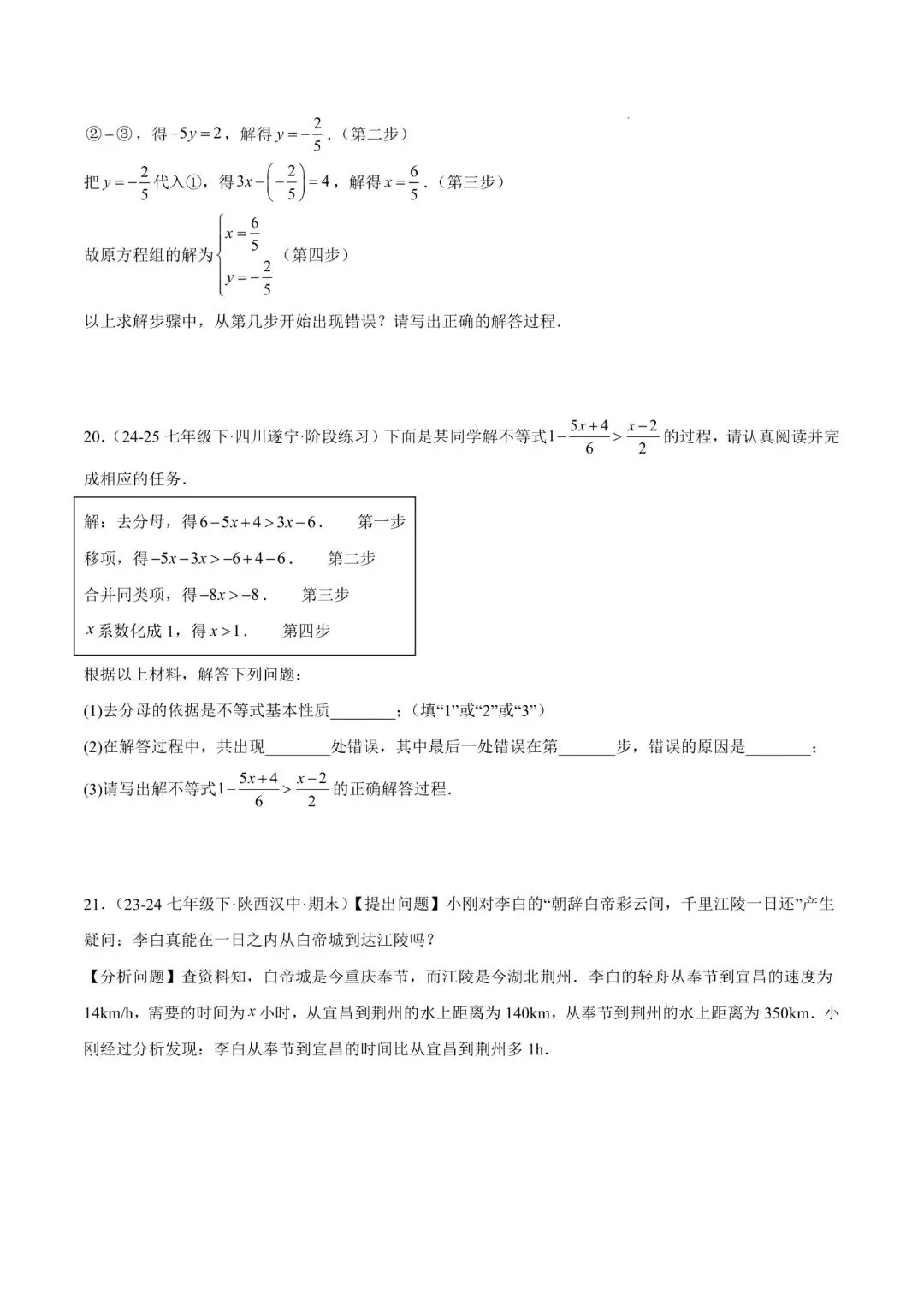 七年级下册师大版《数学期中测试卷》|完整电子版可打印