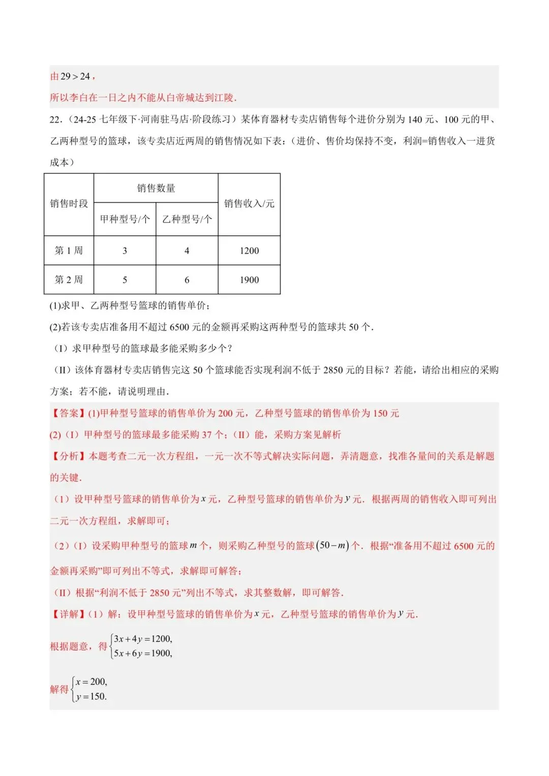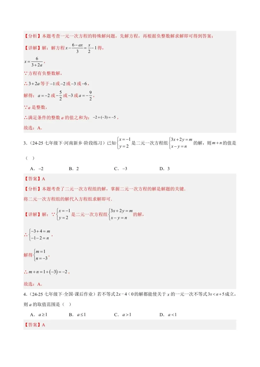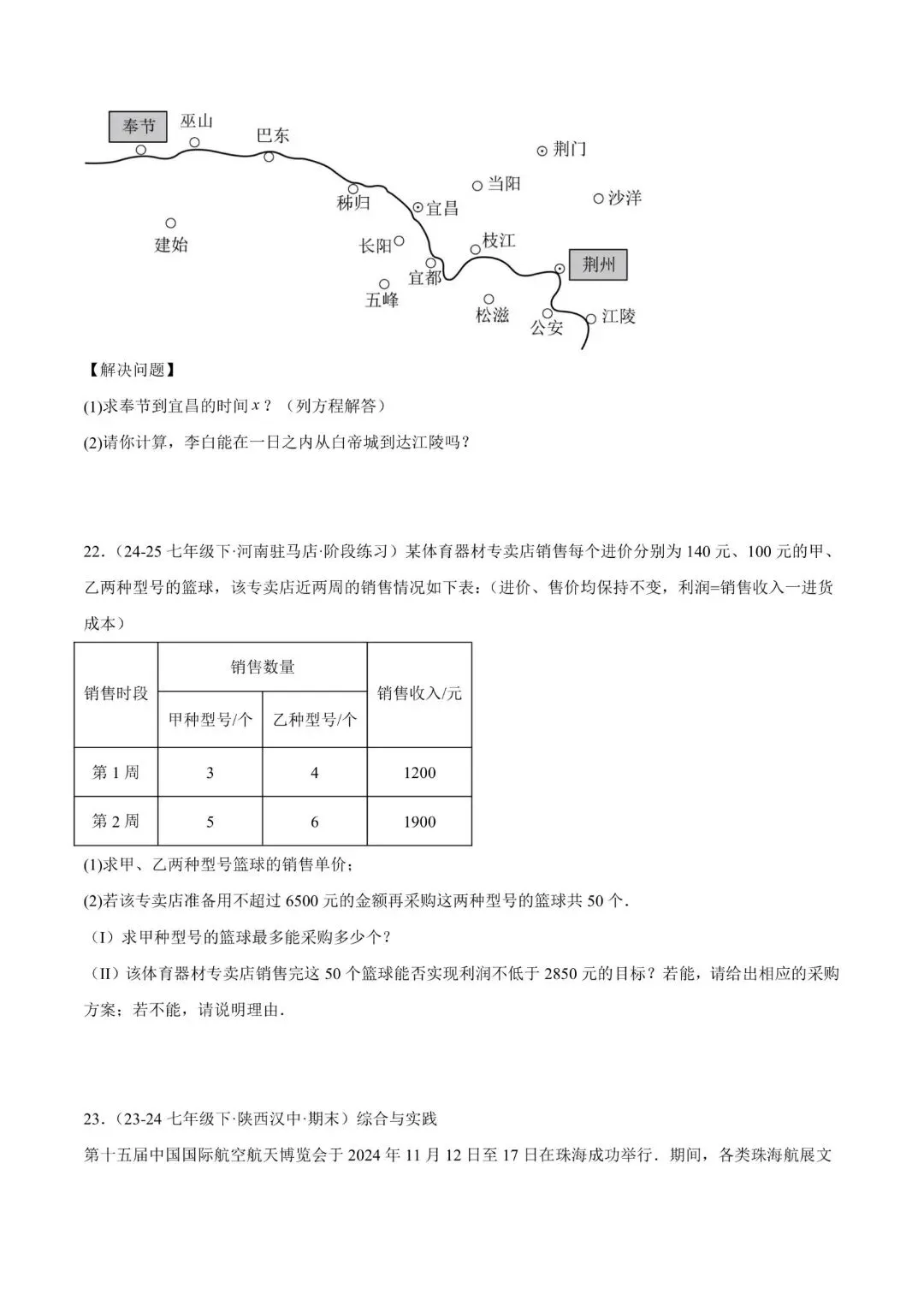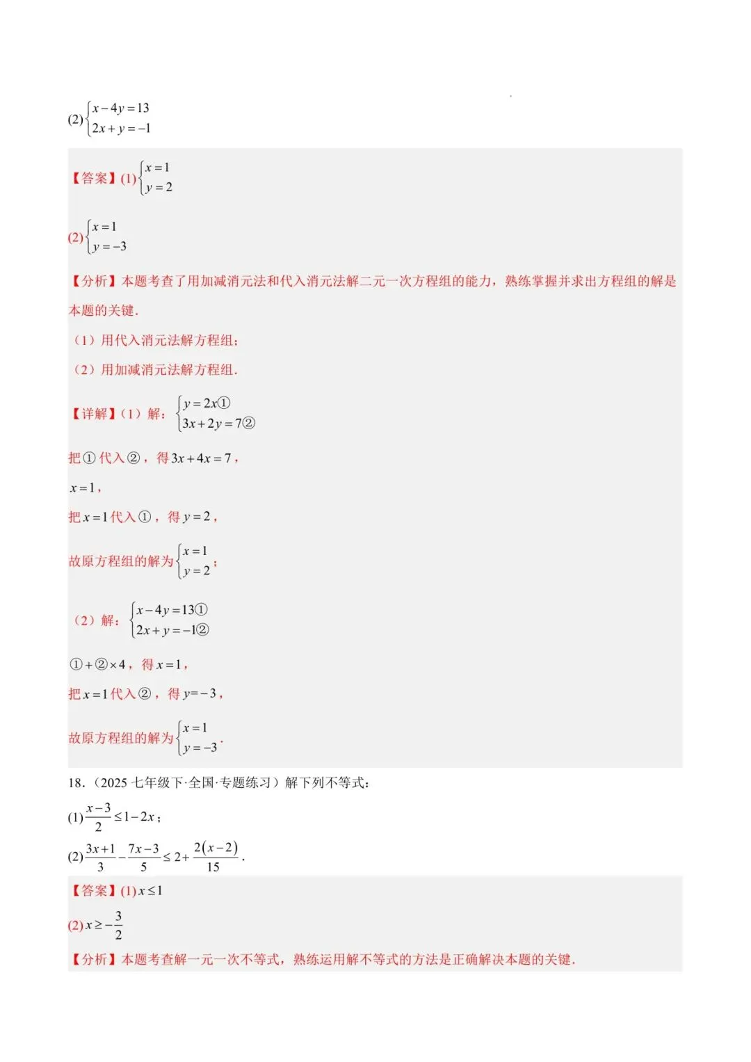 七年级下册师大版《数学期中测试卷》|完整电子版可打印
