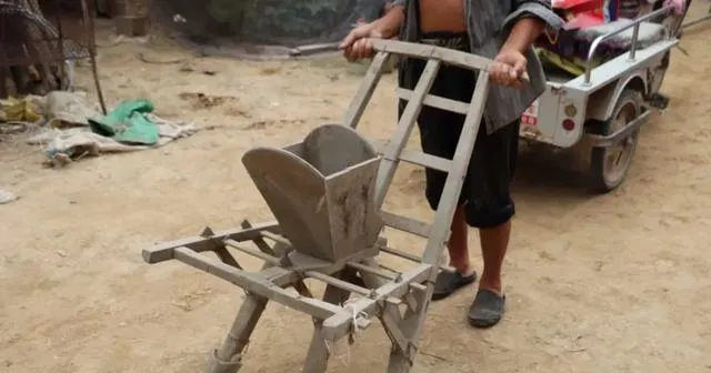 这件木架子叫木耧子,种玉米种谷子的都离不开它,两边两个把手,一头推一头扶,走田埂的时候得把牛牵稳,籽撒得齐,走完一趟回头还得抖一抖残剩的谷子,爷爷提过,好家伙,靠这个一地能整得松松垮垮,不慌不忙全得劲,现在播种机呼啦一下就过完,木耧子都成摆设了。