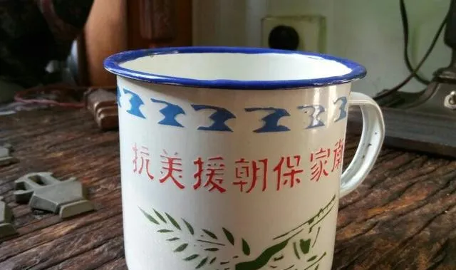 这老物件叫搪瓷缸子,浅白底、蓝边,缸身上印着大红标语,喝水泡茶都是它打底,摔一下碰掉一块釉,铁皮处就开始掉锈,一家老小一年两换也不心疼,小时候用牙磕开个小口还舍不得扔,搪瓷缸落了幕,新杯子琳琅满目,这种沉手感却再也没见着。