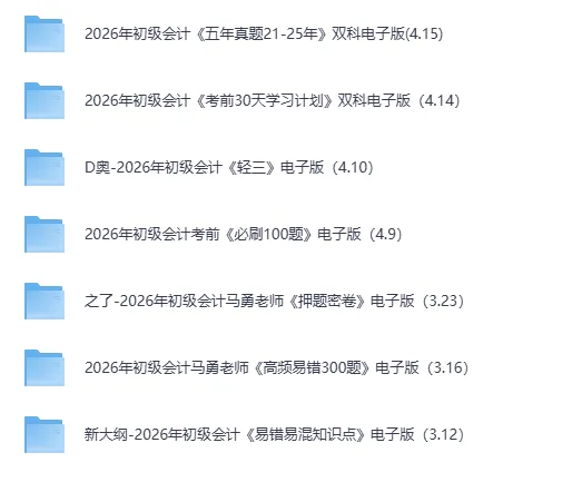 2026年初级会计电子版资料更新(4.15) 微信推送改版啦,为了不错过最新的考试资讯和资料分享,记得把学姐设为【星标】呀~ 星标方法很简单:点击上方蓝字【财会学姐】→点击右上角【…】→设为星标 关注下方两个公众号,防止失联。 2026年东奥会计类网课+题库免费使用啦! 点击下方↓“阅读原文”↓免费自取!
