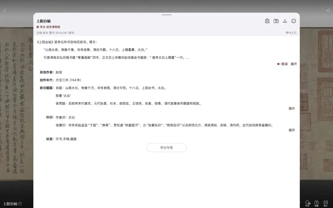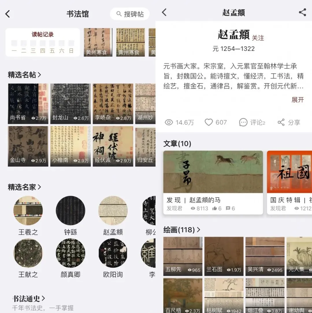一句话总结:里面全是高清大图,历代书画名作几乎都能找到,就像一个随身带着的博物馆。