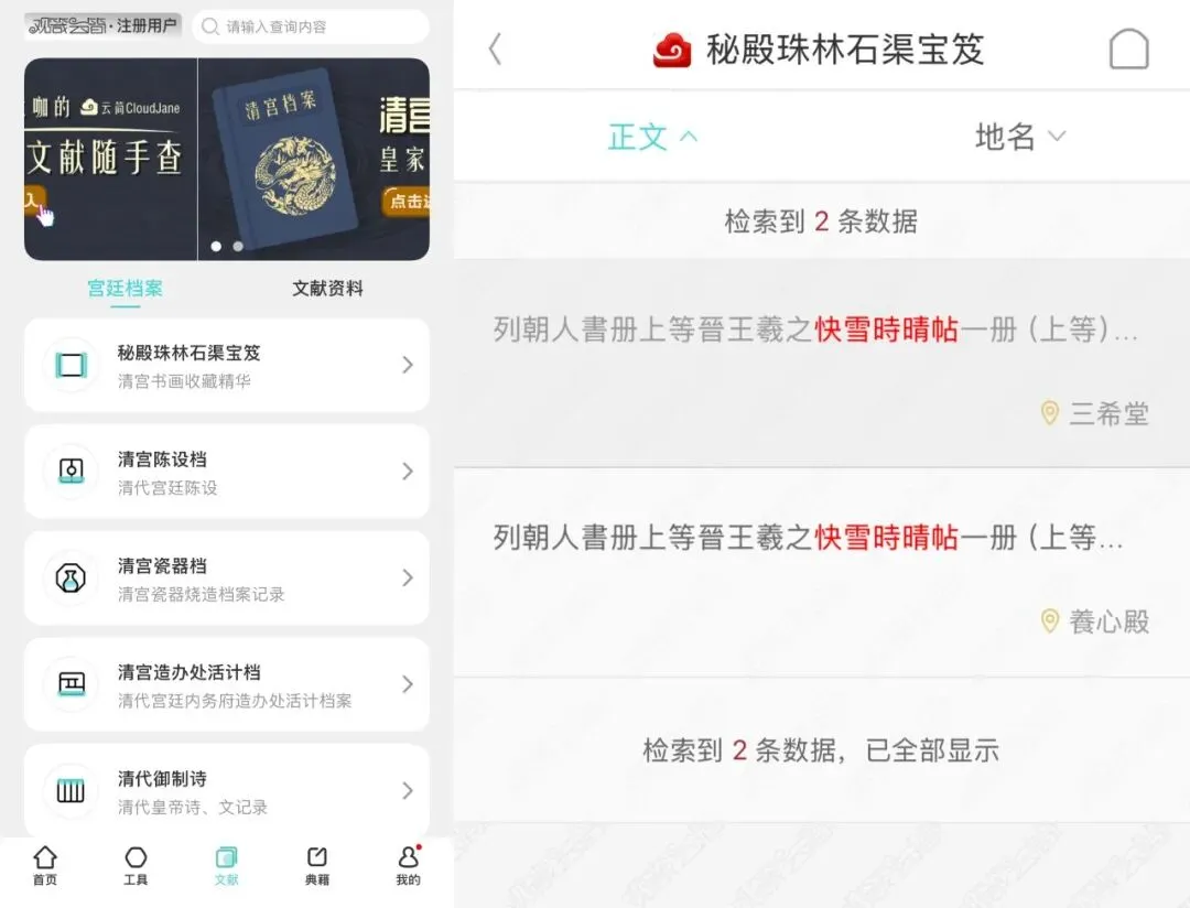 平台收录了数千部珍罕早期艺术画本,涵盖印谱、法书、碑帖、画谱等品类。还提供清宫原始档案的数字化检索——《密殿珠林石渠宝笈》《清宫陈设档》等珍贵文献,以往只能在学术机构查阅,如今在手机里就能随时翻阅。