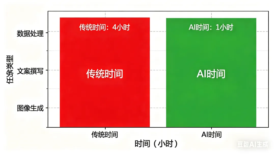 传统方式需要3-4人团队协作完成。而使用AI工具后,一个人+AI,2小时搞定。