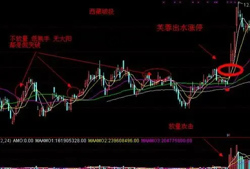 芙蓉出水:经过大盘盘整后,股价以地量的形式在一个狭小的价格空间内横盘震荡整理,此时攻击线、操盘线、生命线、决策线之间的空间距离变得缩小,四种逐渐形成上升的多头排列,短期的攻击线和操盘线发生粘合或金叉,此时突然一根大阳线(涨幅要求至少在5%以上)冲破所有均线压制,我们就称这种大阳线为芙蓉出水,如果这种大阳线是涨停K线,那就是我们今天要讲的芙蓉出水涨停板。