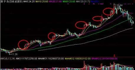 3、有时股价分几次上冲季均线,其中有一根阳线最终能站稳在季均线之上,这根阳线也称为出水芙蓉。