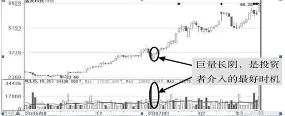 (2)出现巨量大阴线的次日股价走势十分关键,若次日收出阳线,且成交量没有萎缩,那么投资者就可大胆介入。
