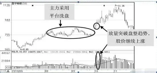 主力在底部建仓完毕后,按照其计划开始拉升股价,当主力将股价拉升了一定的高度后,此时市场上看多的投资者越来越多,跟风盘蜂拥而上,主力见到这样的情形,为了后面的拉升成本,不得不将一些获利丰厚的获利盘清洗出局,于是主力暂时停止拉抬动作,进入长时间的休整期,股价在一个狭小的区域内反复震荡呈盘整走势,失去了明确的方向,犹如一条河流穿行在弯弯曲曲的山峦之间,短期难以判断其流向。这种暂时迷失了方向的个股只要主力洗盘结束,就会很快地“苏醒”过来,一旦突破前期高点,就意味着该股经过盘整之后将展开新一轮行情。