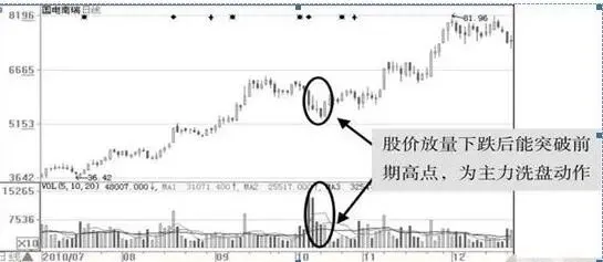 (3)在洗盘时总是刻意制造恐慌气氛,或是长阴贯下,或是巨量下跌,或是破位下行。