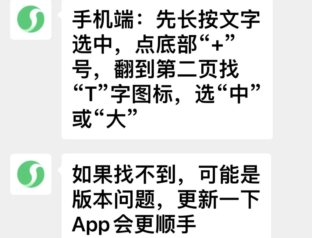 我好像会了怎么把字放大了,把字变颜色时又点了一下(大)就变了。向AI请教了半天也没弄明白,告诉我底部有个T字图标,怎么找也没有,说我版本问题要更新,是这样吗?