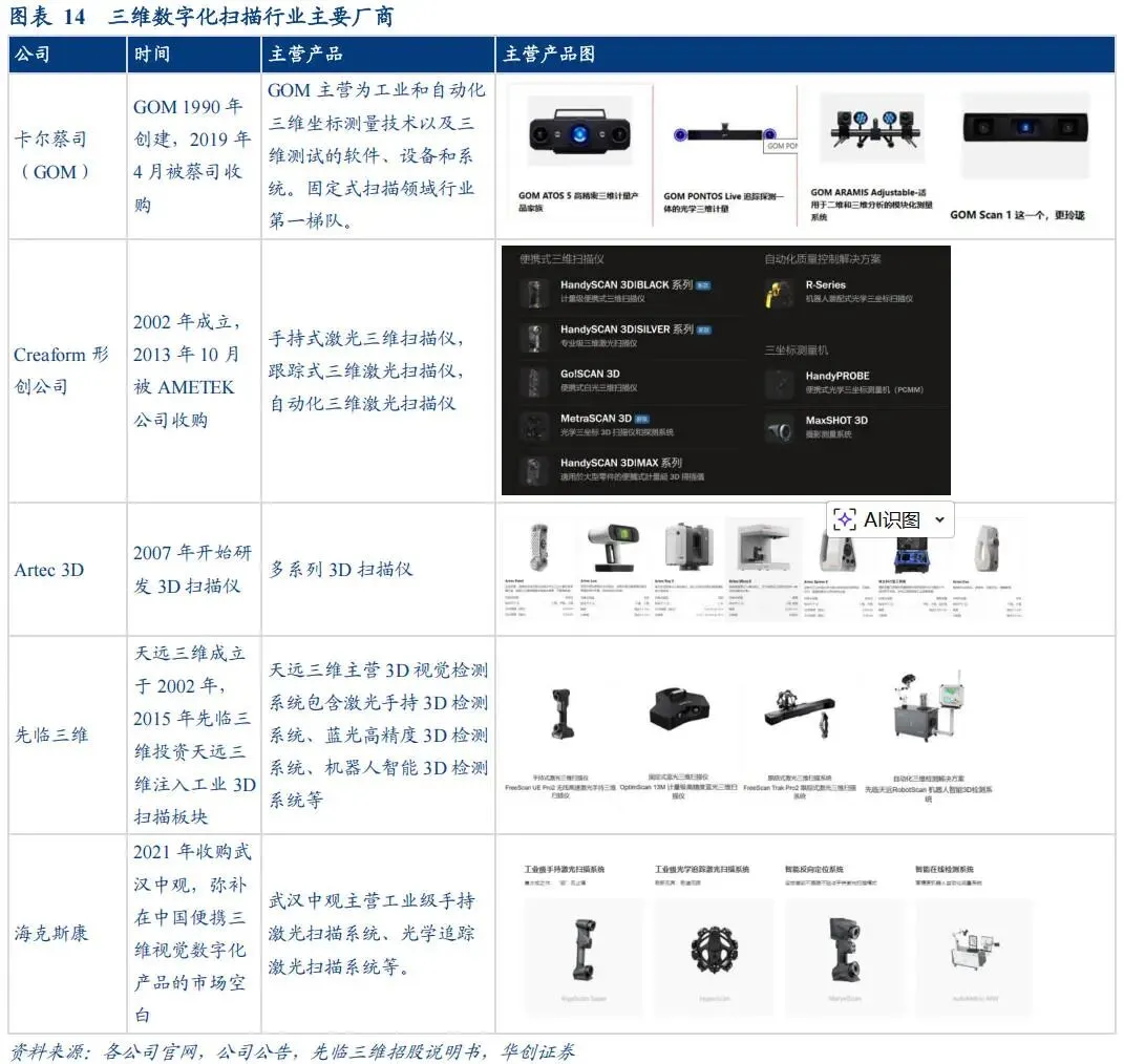 3D扫描是3D视觉在消费级与专业级市场的重要落地方向。随着消费级3D打印、个性化定制、数字内容制作、工业逆向设计、教育科研和文博数字化需求提升,三维扫描不再局限于工业计量设备,而开始进入更广泛的创作者和中小企业市场。扫描仪本质上是一套高精度3D视觉系统,其普及程度提升将反过来推动三维视觉算法、模组和软件平台的成熟。
