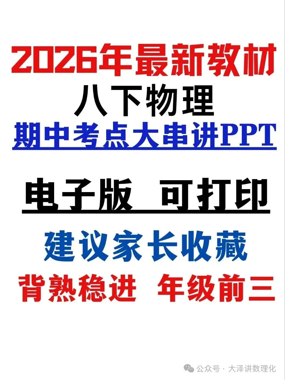 2026年最新版八年级下册物理期中复习考点大串讲课件PPT,完整可打印,学霸学习好帮手,建议家长打印,学霸人手一份 物理期中想拿高分,关键就是抓考点、理思路、练题型。这份专门为期中复习整理的PPT,紧扣最新教材,把全册核心考点、公式规律、易错难点全部串讲到位,一页一个重点,不用再盲目翻书找内容。