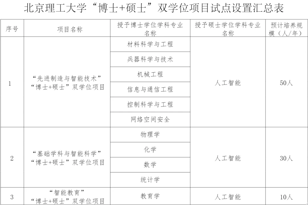山东大学、哈尔滨工业大学、北京交通大学、北京理工大学、西北工业大学等高校的“博士+硕士”双学位项目,硕士学位部分大多也是人工智能专业。
