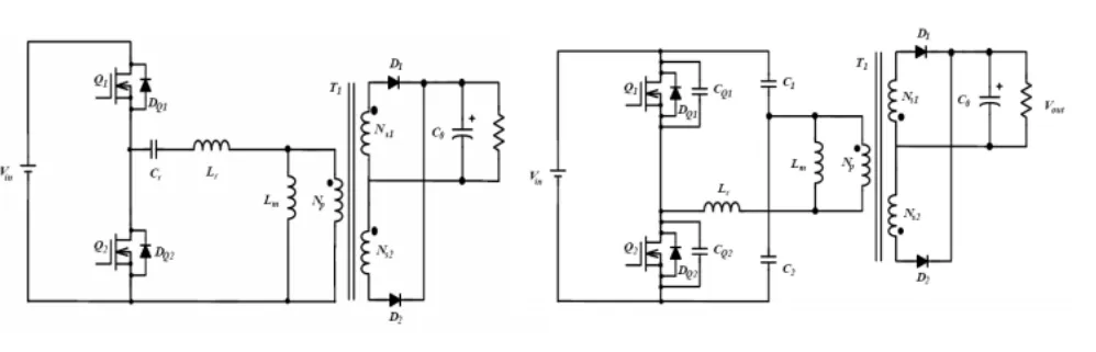 根据谐振电容在电路中的联结方式,LLC半桥谐振电路通常有两种典型连接方式(如图1所示):