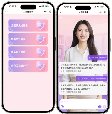 以测评、互动双模式提供情感陪伴与压力疏导,打造沉浸式舒压空间。