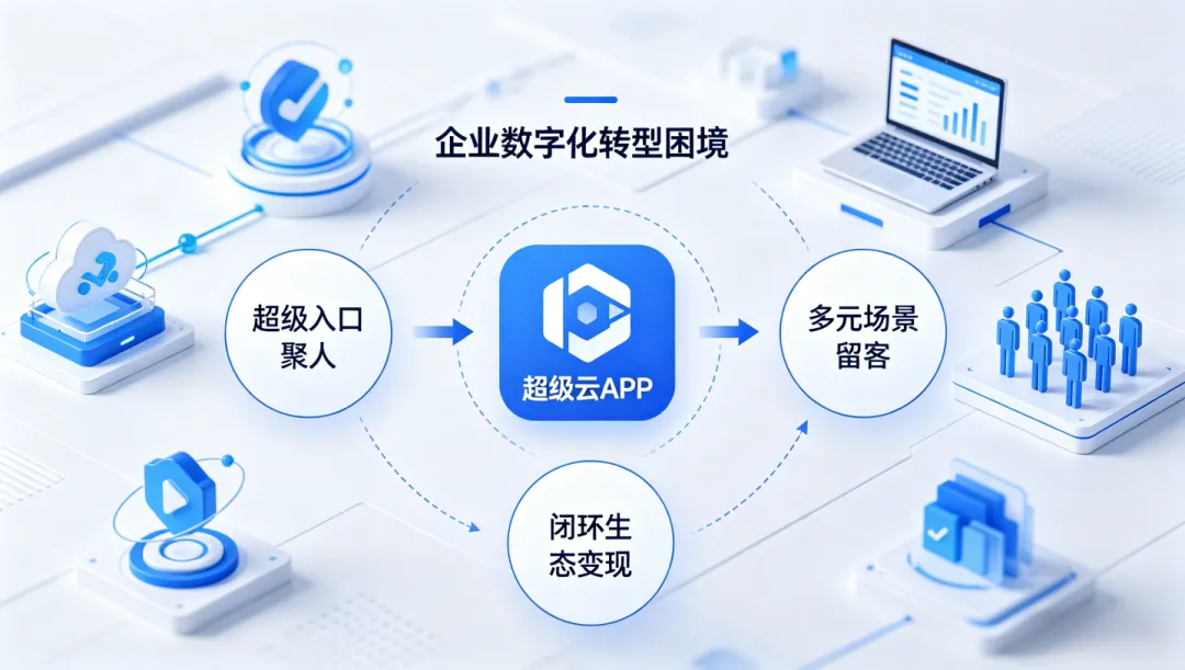 当流量成本逐年攀升、平台规则频繁收紧、用户注意力不断分散,企业数字化转型正陷入前所未有的困境:公域获客越来越贵,私域沉淀流于表面,模式迭代就意味着用户归零。在某信、某音、某付宝、某宝构筑的互联网生态中,中小企业如何跳出 “为平台打工” 的循环,掌握属于自己的流量话语权?答案,藏在超级云APP里。