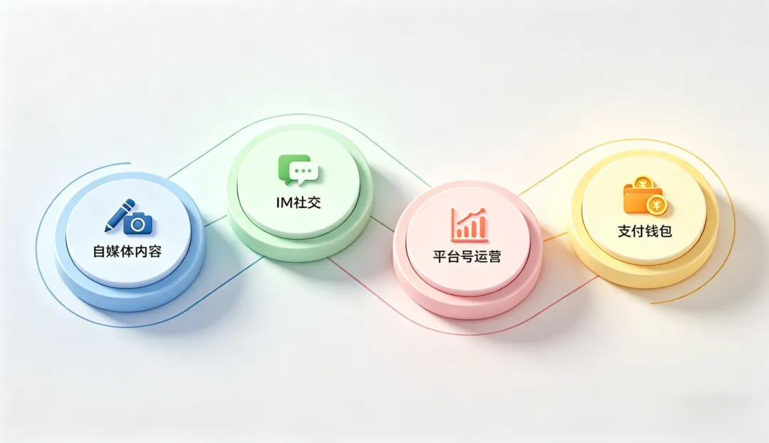 普通版:基础自媒体、IM 消息、单平台号、广告、CPS 功能,适合初创企业快速搭建私域入口,低成本试水数字化转型。