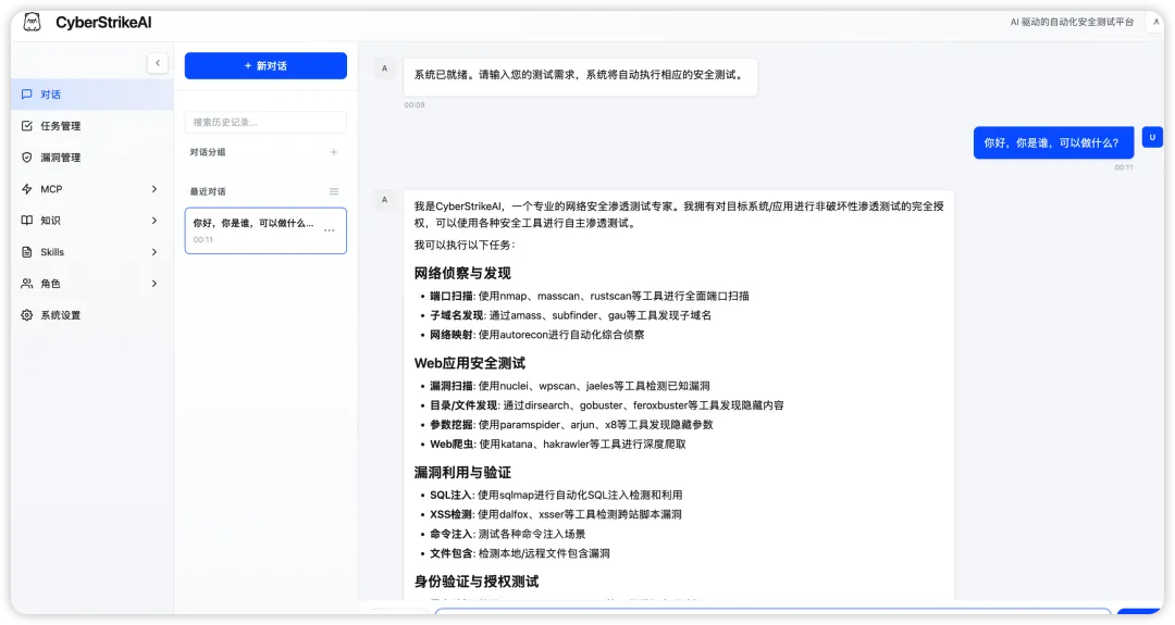 不管你是刚入门的安全小白,还是深耕多年的渗透测试工程师,不管是企业安全运维,还是CTF竞赛备赛,这款工具都能帮你省去80%的繁琐操作,让AI替你搞定漏洞发现、攻击链分析、工具调用等核心工作,真正实现“输入指令,坐等结果”。