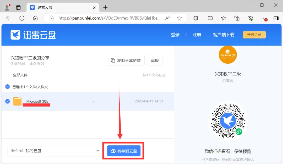 Microsoft 365软件下载 软件介绍:Microsoft Office 是微软公司开发的一套基于 Windows 操作系统的办公软件套装。常用组件有 Access、Word、Excel、PowerPoint等。可以进行文字处理、表格制作、幻灯片制作、简单数据库处理等方面工作。 使用场景:Microsoft365可用于日常学习、工作办公。部分新电脑自带的office就是此版本(但是是试用期的/企业版的)。 下载地址『迅雷云盘』下载链接 https://pan.xunlei.com/s/VOqE9rnYex-RVBBSvQlaHbsXA1?pwd=tjk8# 如何下载: (1)手机/电脑安装『迅雷』软件,手机号码登录; (2)复制“下载链接”到迅雷搜索框粘贴并搜索; (3)转存Microsoft365文件夹; (4)在迅雷云盘里找到“Microsoft365”文件夹并下载到电脑上 安装出错、激活失败: 可以联系工程师远程安装,微信号:WMS146137 ▶▶远程安装Office+永久激活