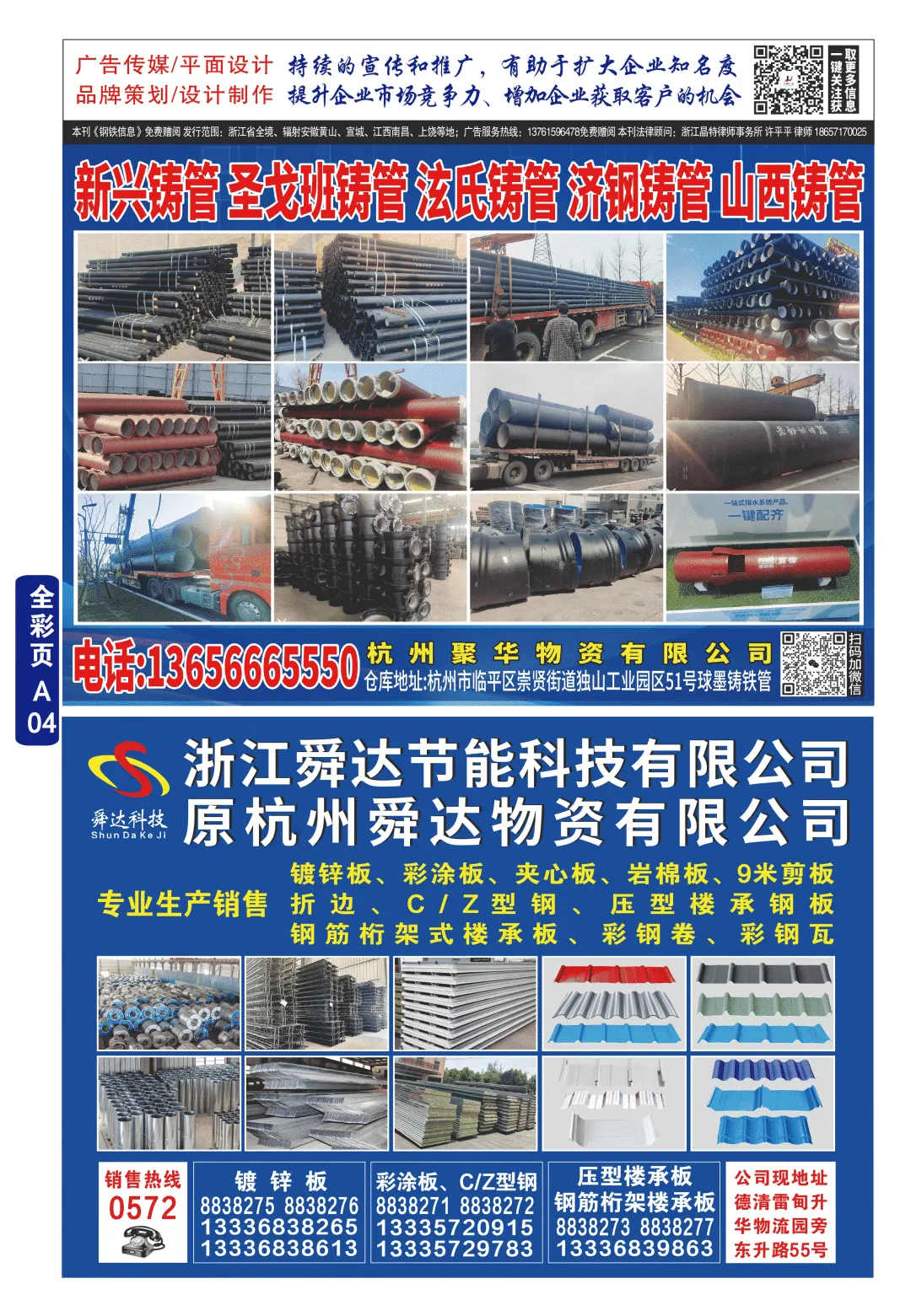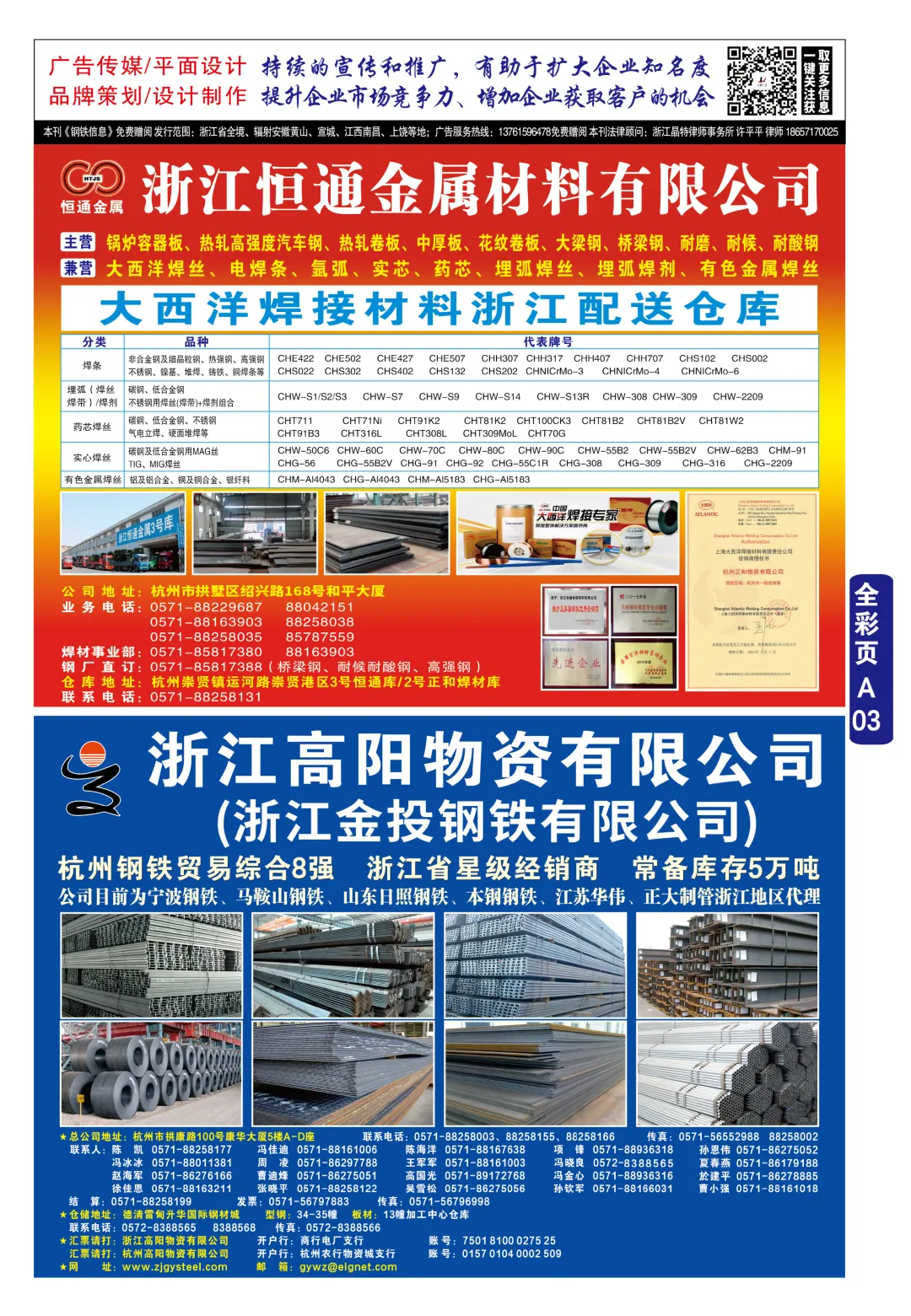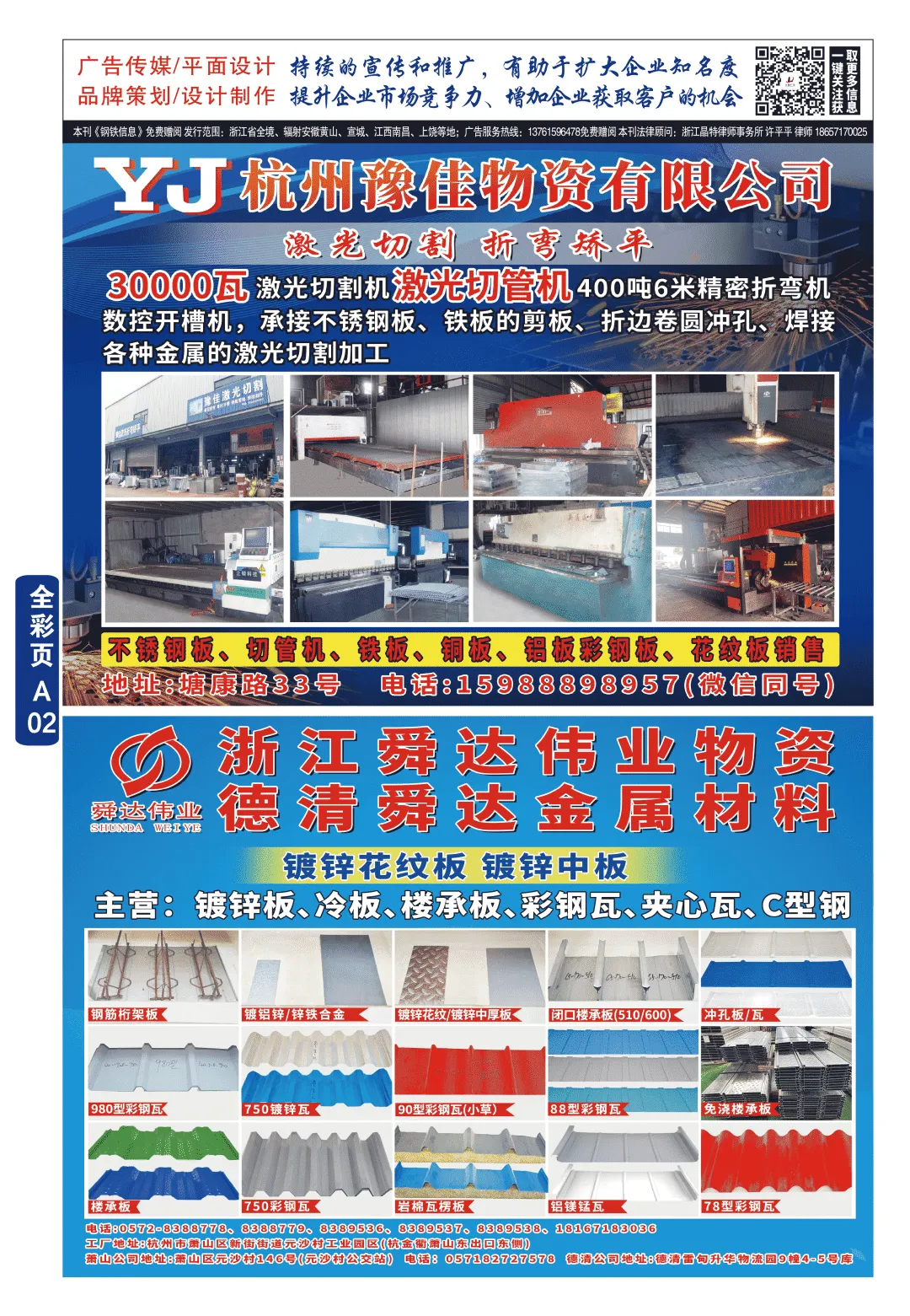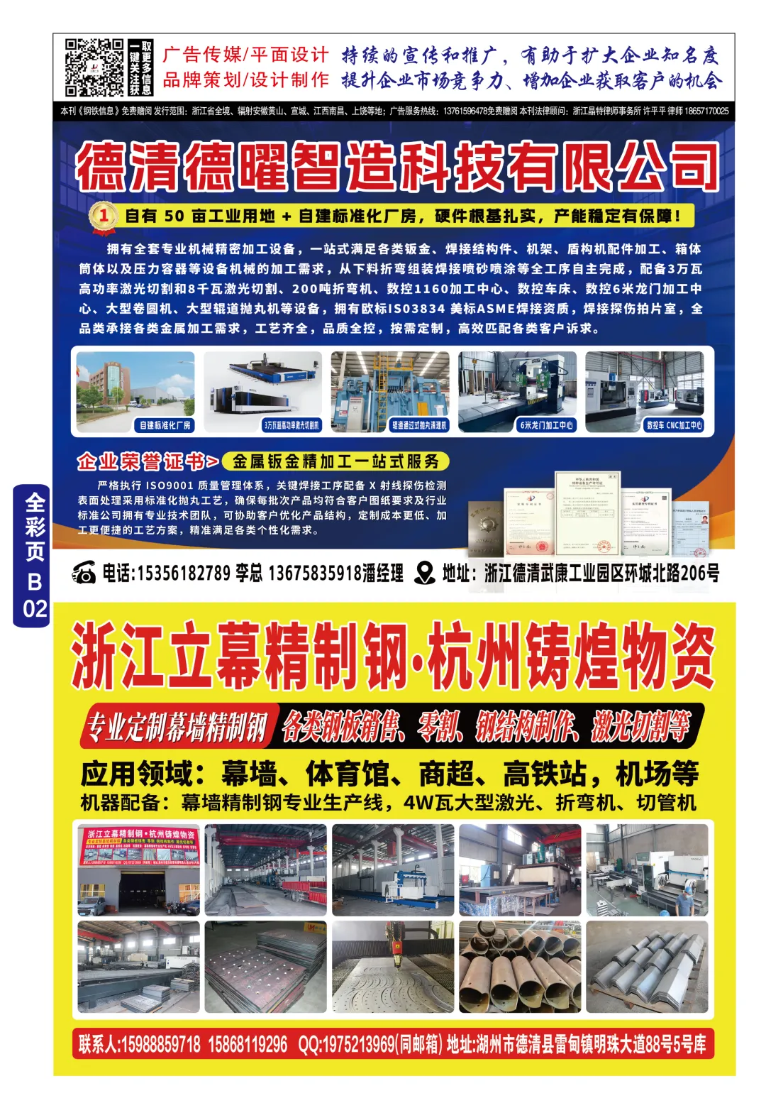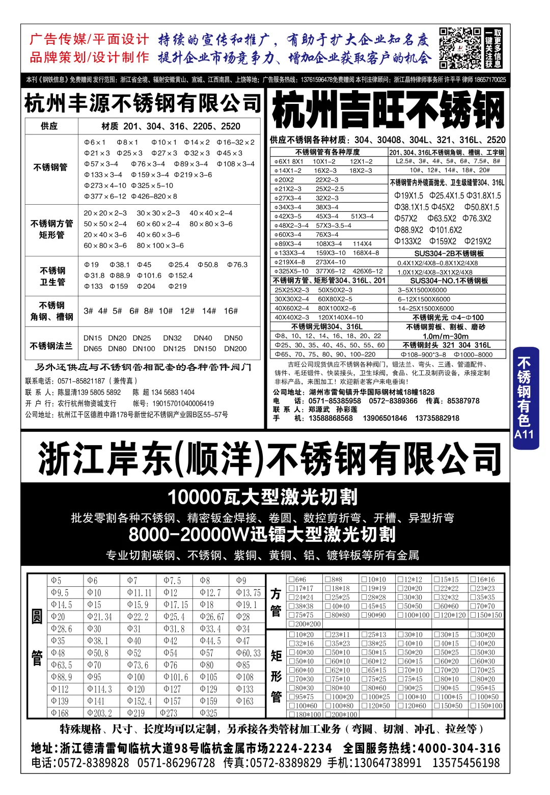 《钢铁信息》DM纸媒广告,主要是针对钢铁行业发行的一本刊物。主要以钢材信息广告资源信息、钢市信息、剪切加工配送、物流运输、仓库面门出租转让、招聘求职信息等内容为主,是一款内容较为丰富实用性较强的功能型报刊。我们所提供合作的每一家供应商都是浙江地区具有一定实力和规模的优质企业,各类钢材品种齐全,真实有效。为买卖钢及相关行业用钢需求提供了方便真实的信息服务。多年来,深受广大买卖商家的青睐