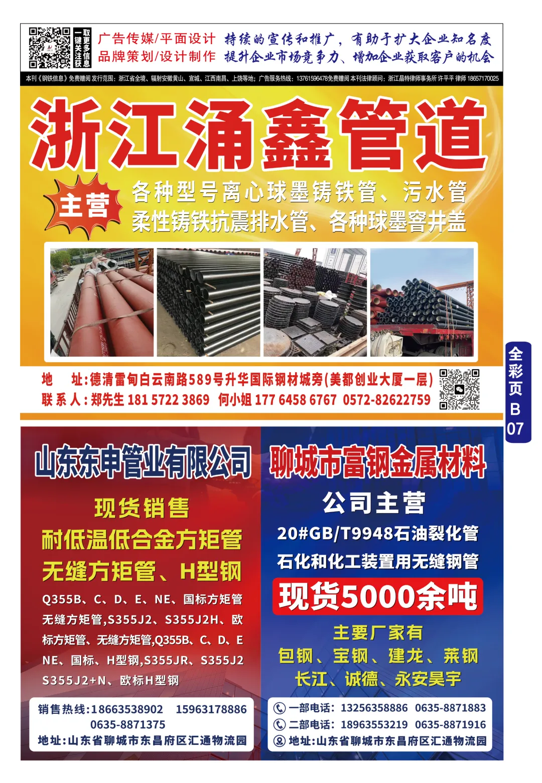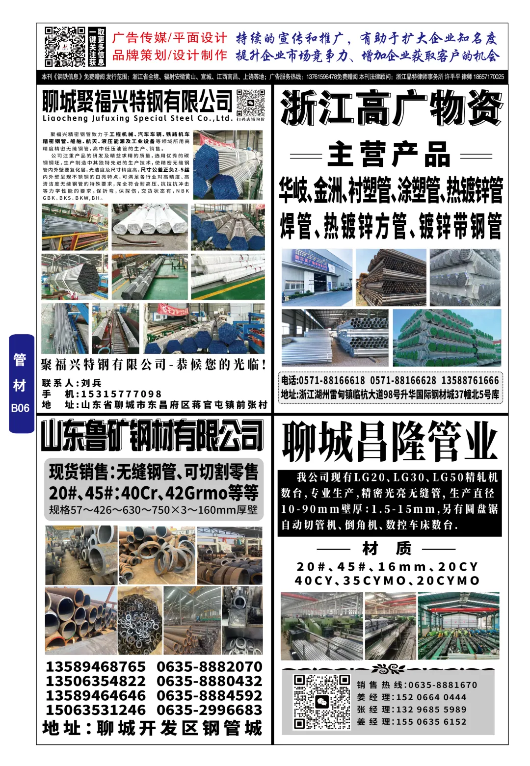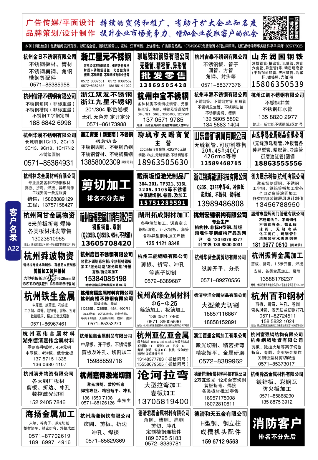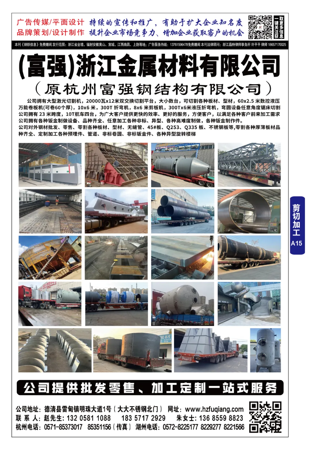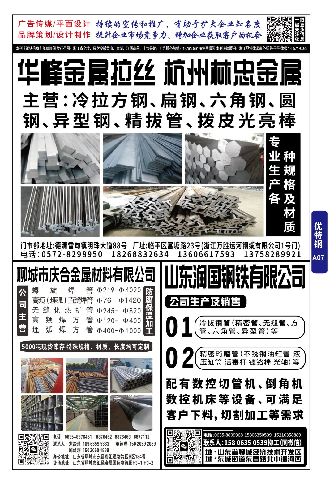 《钢铁信息》DM纸媒广告,主要是针对钢铁行业发行的一本刊物。主要以钢材信息广告资源信息、钢市信息、剪切加工配送、物流运输、仓库面门出租转让、招聘求职信息等内容为主,是一款内容较为丰富实用性较强的功能型报刊。我们所提供合作的每一家供应商都是浙江地区具有一定实力和规模的优质企业,各类钢材品种齐全,真实有效。为买卖钢及相关行业用钢需求提供了方便真实的信息服务。多年来,深受广大买卖商家的青睐