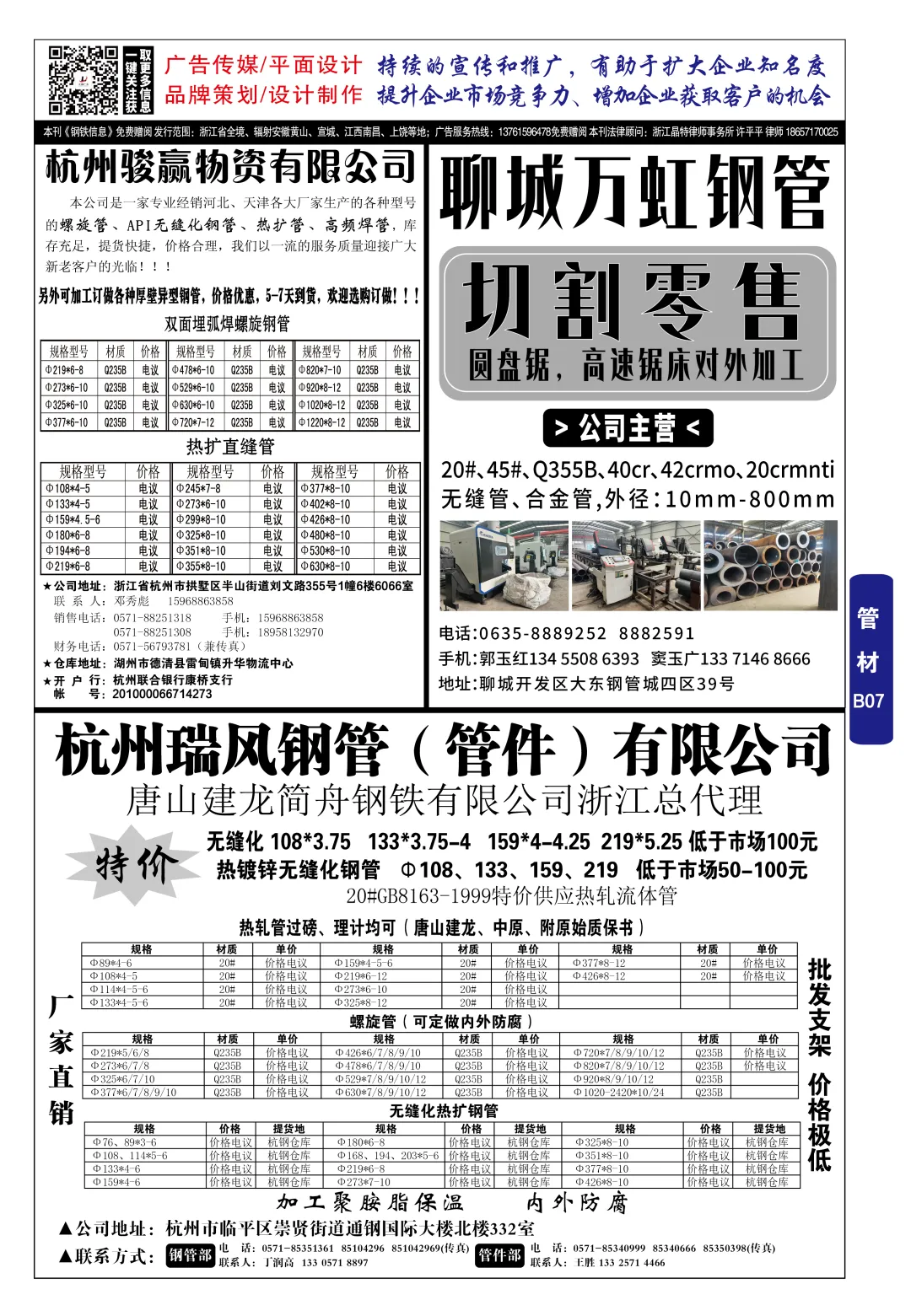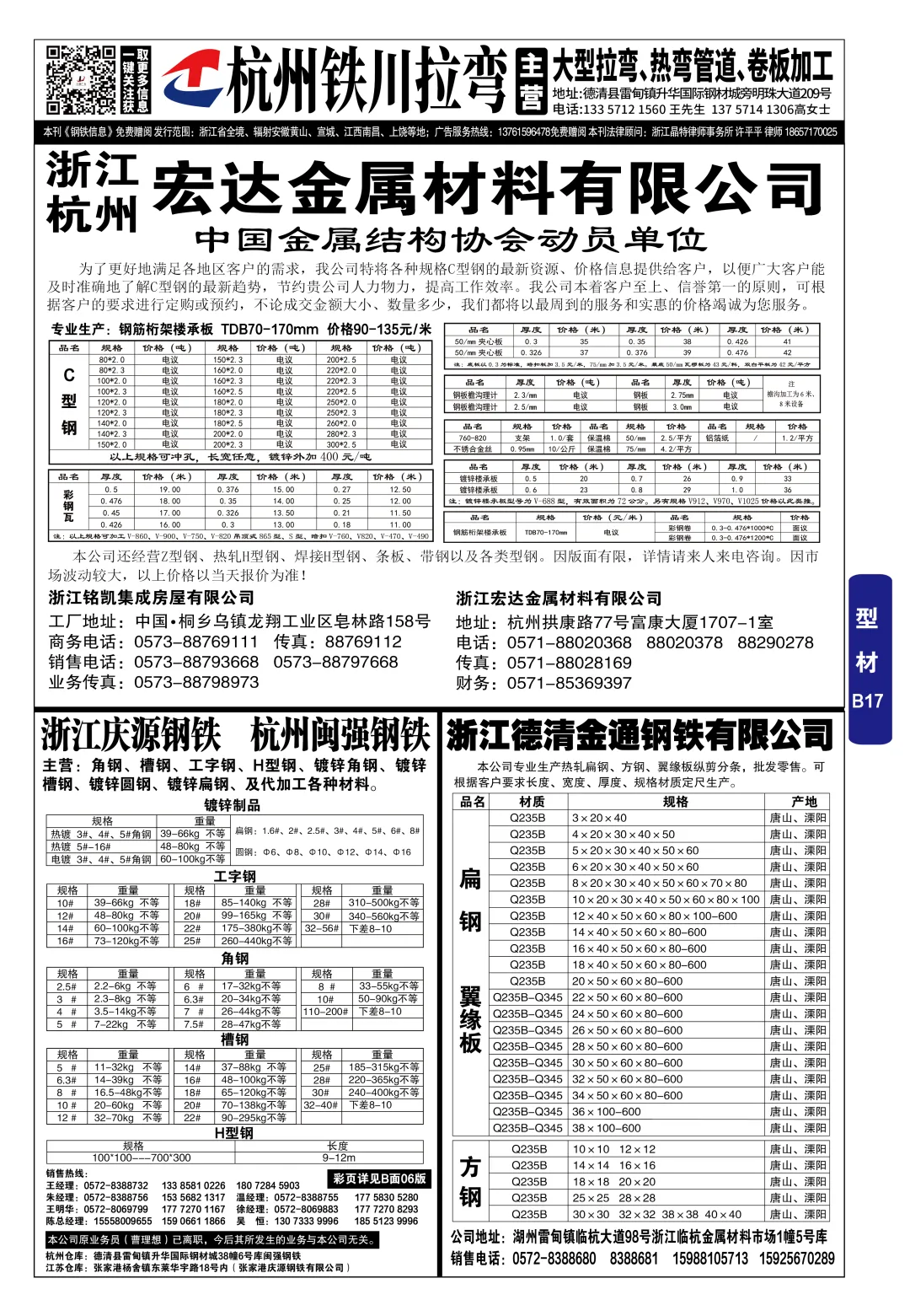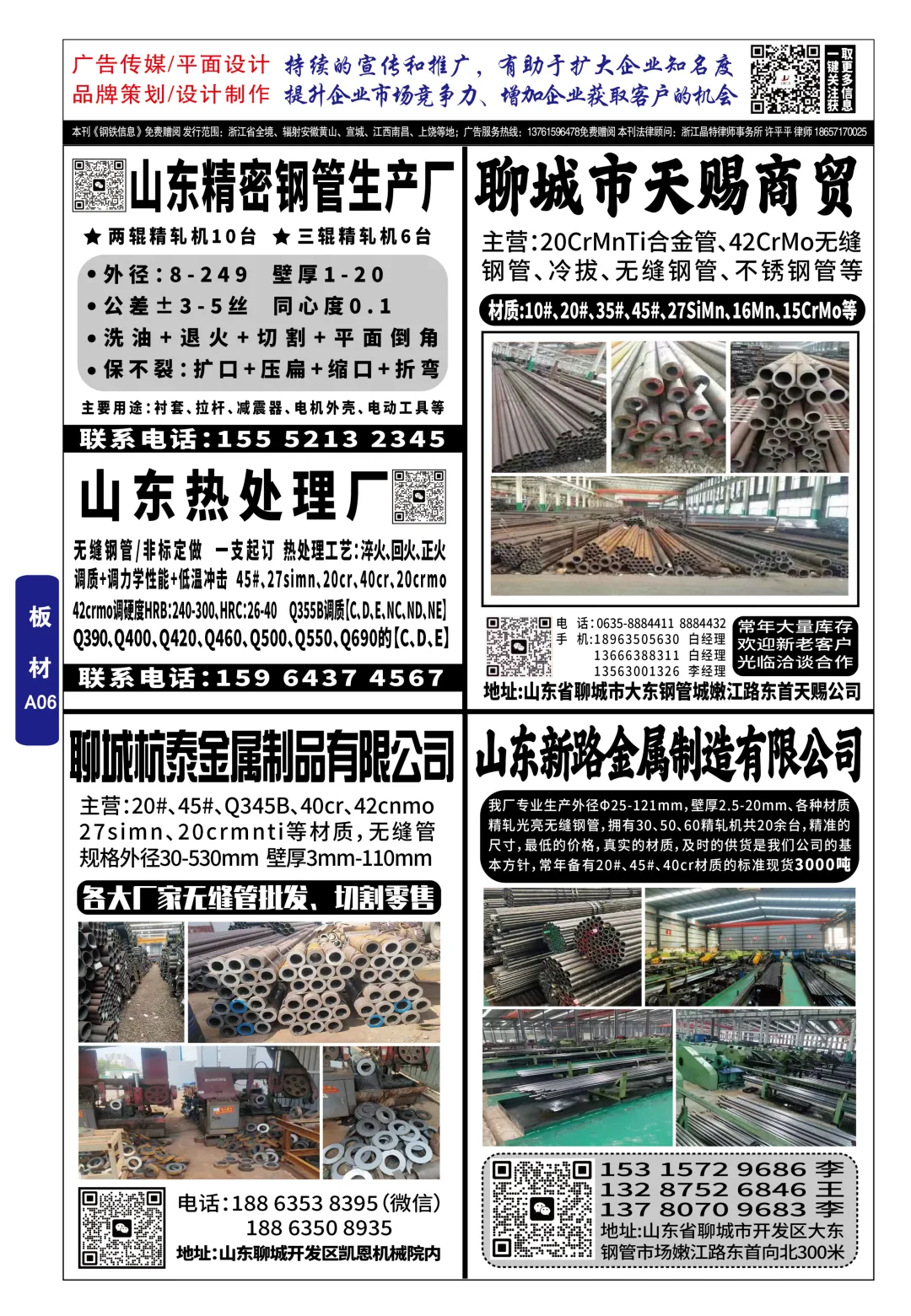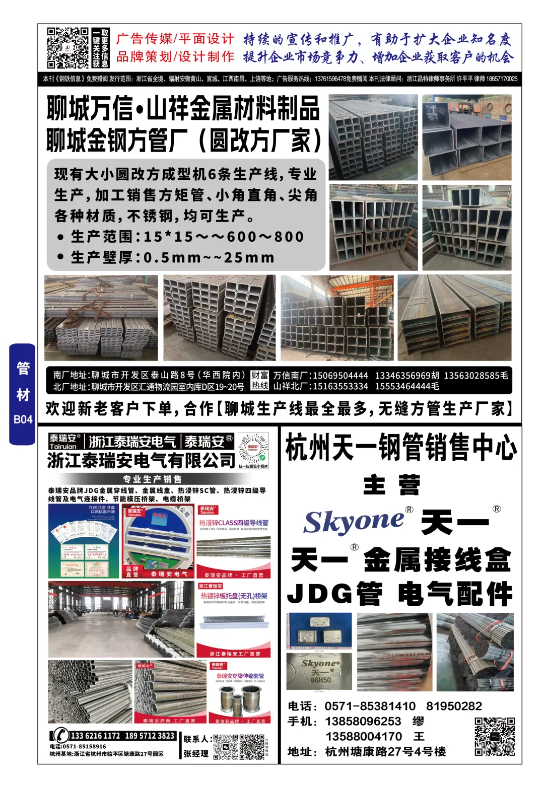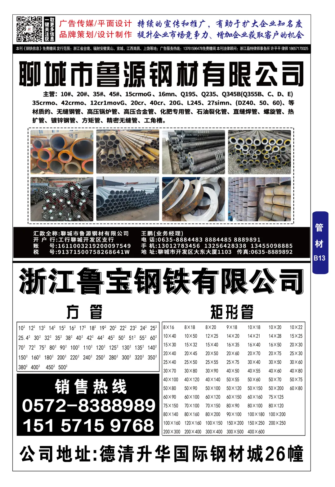 《钢铁信息》DM纸媒广告,主要是针对钢铁行业发行的一本刊物。主要以钢材信息广告资源信息、钢市信息、剪切加工配送、物流运输、仓库面门出租转让、招聘求职信息等内容为主,是一款内容较为丰富实用性较强的功能型报刊。我们所提供合作的每一家供应商都是浙江地区具有一定实力和规模的优质企业,各类钢材品种齐全,真实有效。为买卖钢及相关行业用钢需求提供了方便真实的信息服务。多年来,深受广大买卖商家的青睐