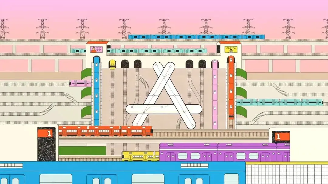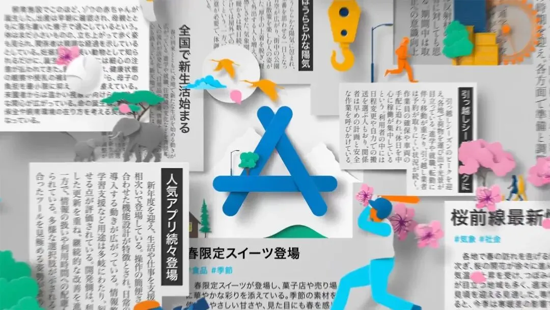 近日,苹果公司在日本正式推出 App Store 全新营销活动,将其标志性的「A」字母标志打造为一扇通往涵盖16大应用类别的多元宇宙传送门。