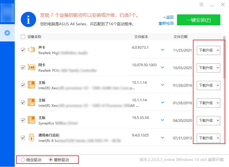打开之后直接扫描驱动,软件会自动检测你当前缺少或者需要更新的驱动,列出来之后可以一键安装,也可以自己手动勾选,想装哪个装哪个,操作门槛很低,小白完全没压力。