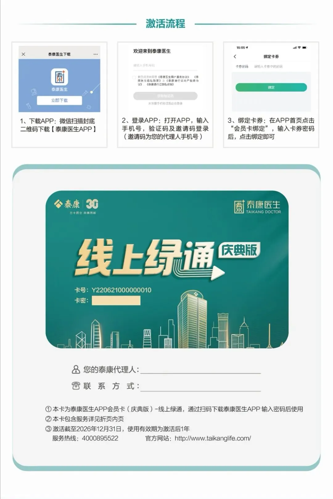 点击『阅读原文』,进入泰康车险《泰康医生App会员卡(庆典版)——线上绿通服务》服务手册