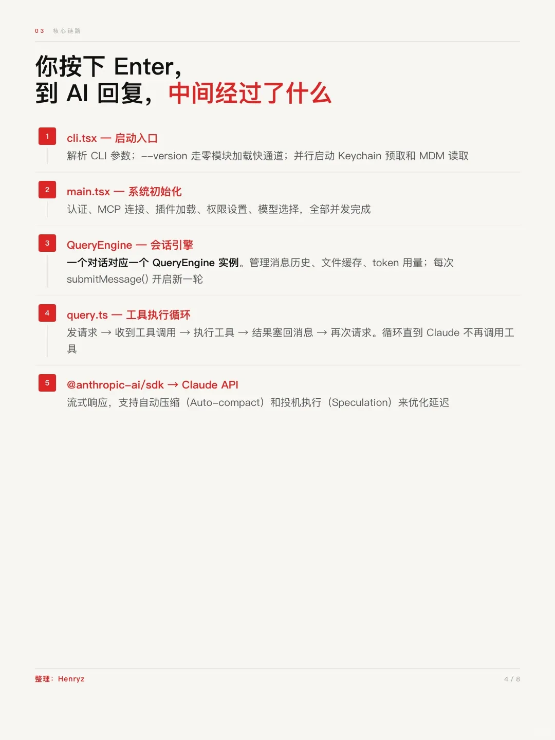 第二,终端界面居然是用 React 写的。靠 Ink 库把组件渲染到终端,前端一看就懂,整个 CLI 就是一棵 React 组件树,状态一变就重新渲染。