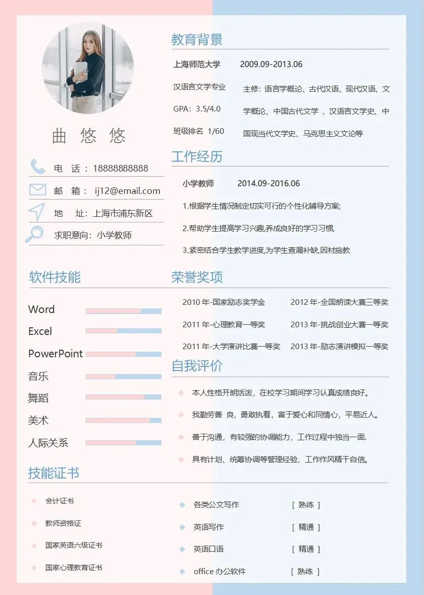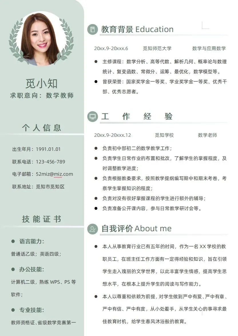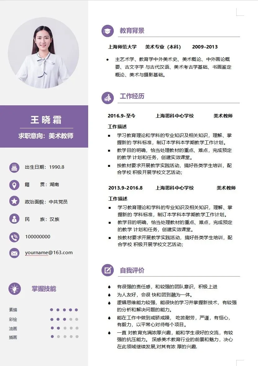 教师个人简历通用模板Word格式(免费下载保存可编辑修改)