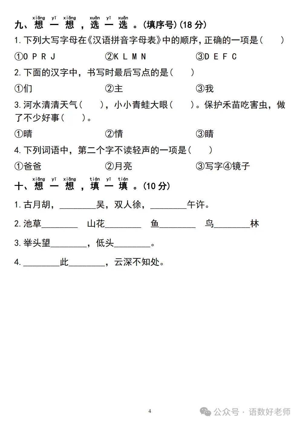 一年级下册语文《期中真题测试卷》可免费下载语数电子版试卷