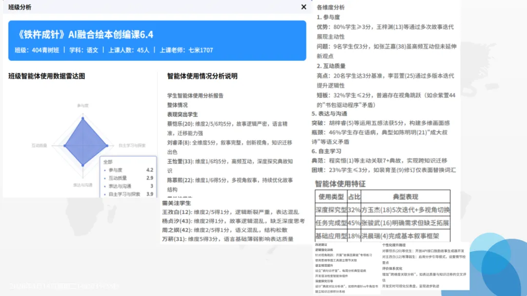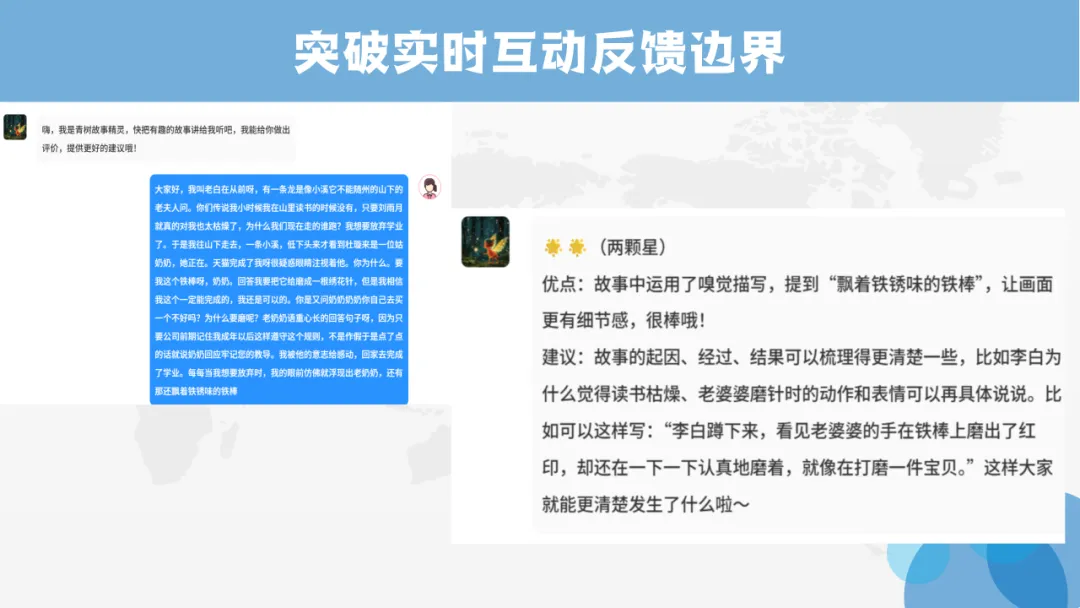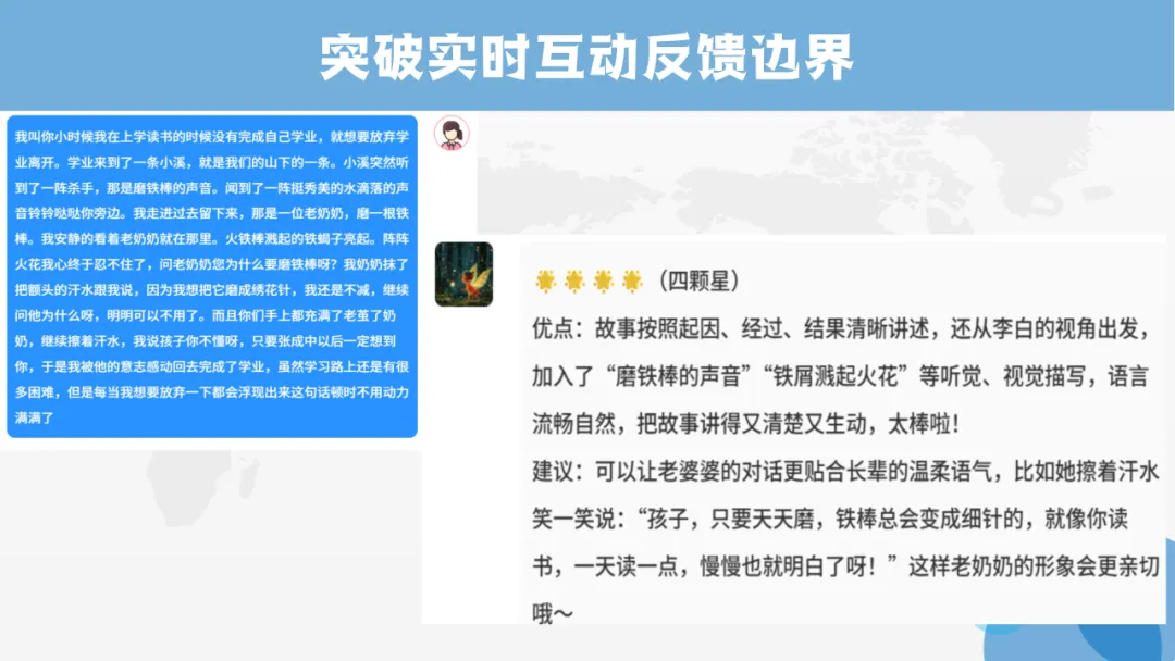 班里有个特别安静的男孩,平时上课几乎不举手,更别说站出来讲故事。可在AI课堂上,他对着“故事精灵”慢慢说、反复练,没有同学注视的紧张,只有温和的实时提示。那节课,他第一次完整讲完了《铁杵成针》,声音不大,却格外认真。我站在一旁看着,心里又暖又软:原来不是孩子不愿发光,是我们没找到适合他的那束光。