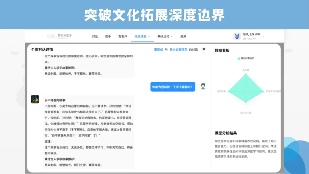 讲到李白勤学的精神,我想多给孩子们拓展古人求学的典故,可单凭记忆,很难一下子拿出丰富又准确的内容。AI快速整理出相关成语与故事,随时问答、随时拓展,孩子们听得眼睛发亮。原来文化不必死记硬背,它可以很近、很鲜活。