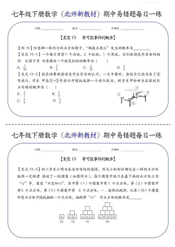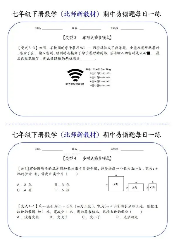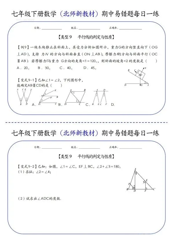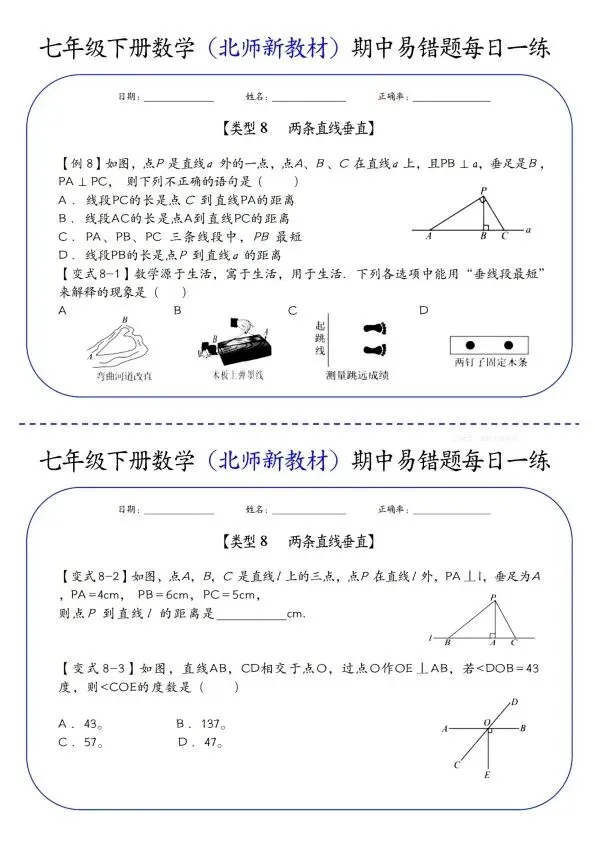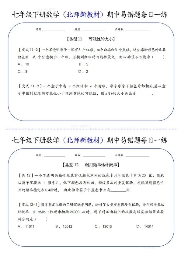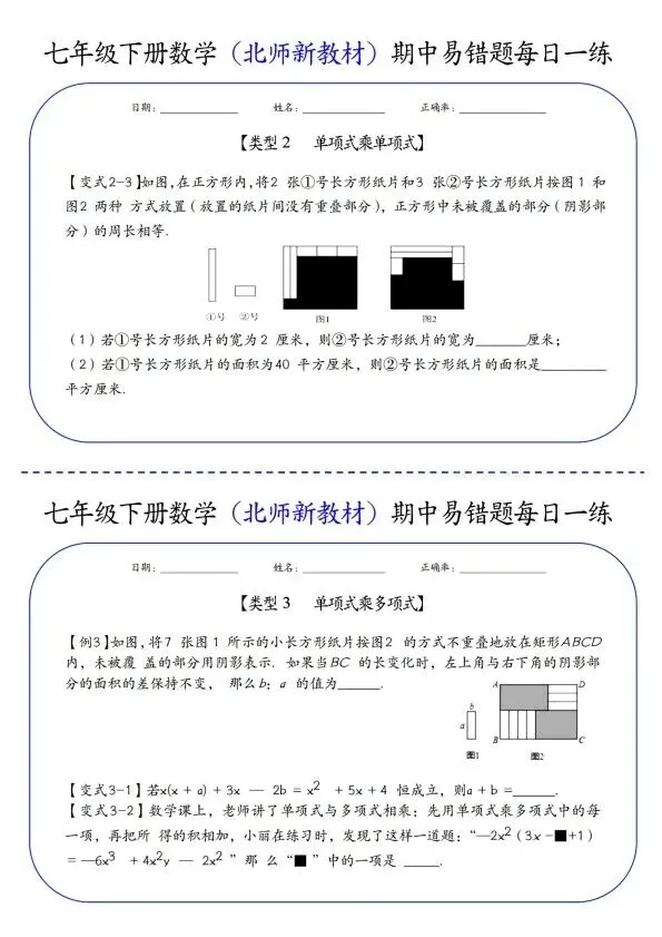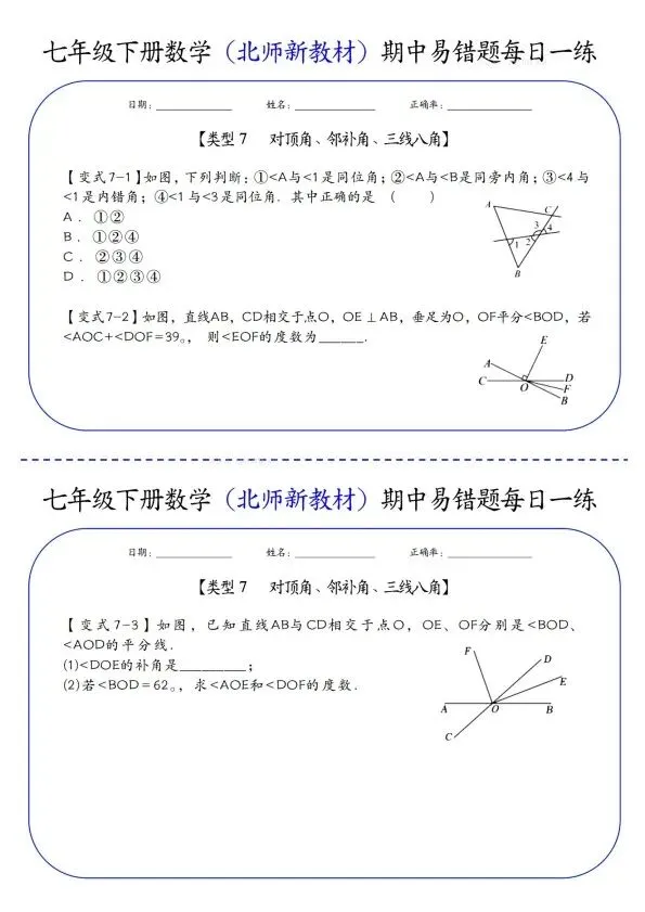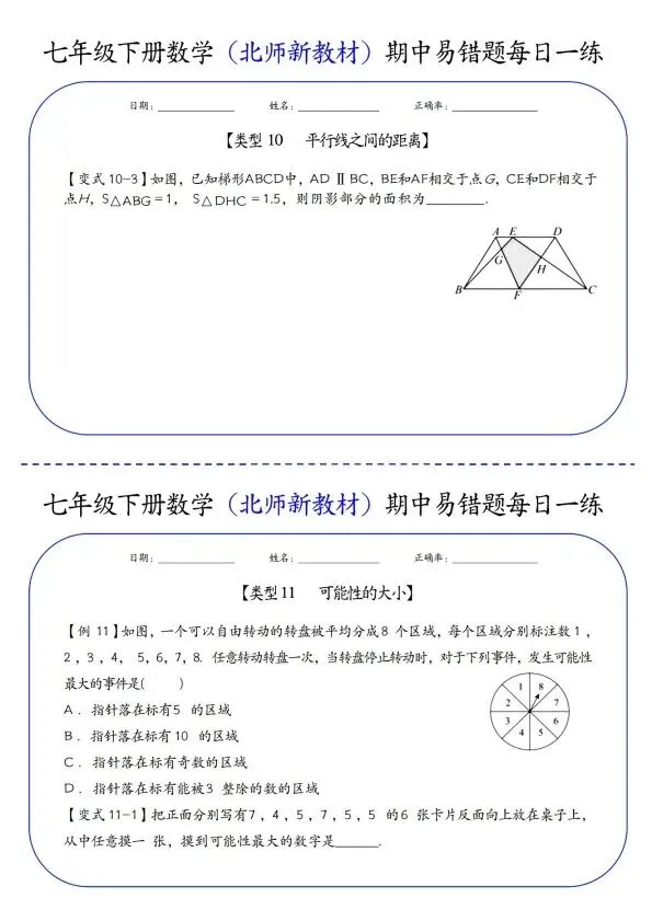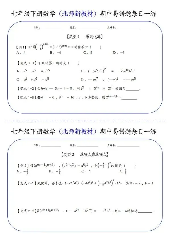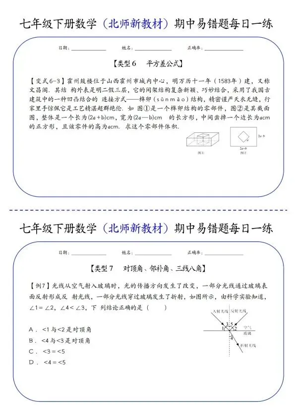 26新七年级下册数学北师版期中易错题每日一练(完整电子版可打印)!家长关注收藏,让孩子用高效的方法学透知识点,用优质的资源为学习赋能,在成长的赛道上稳步前行,轻松提分!