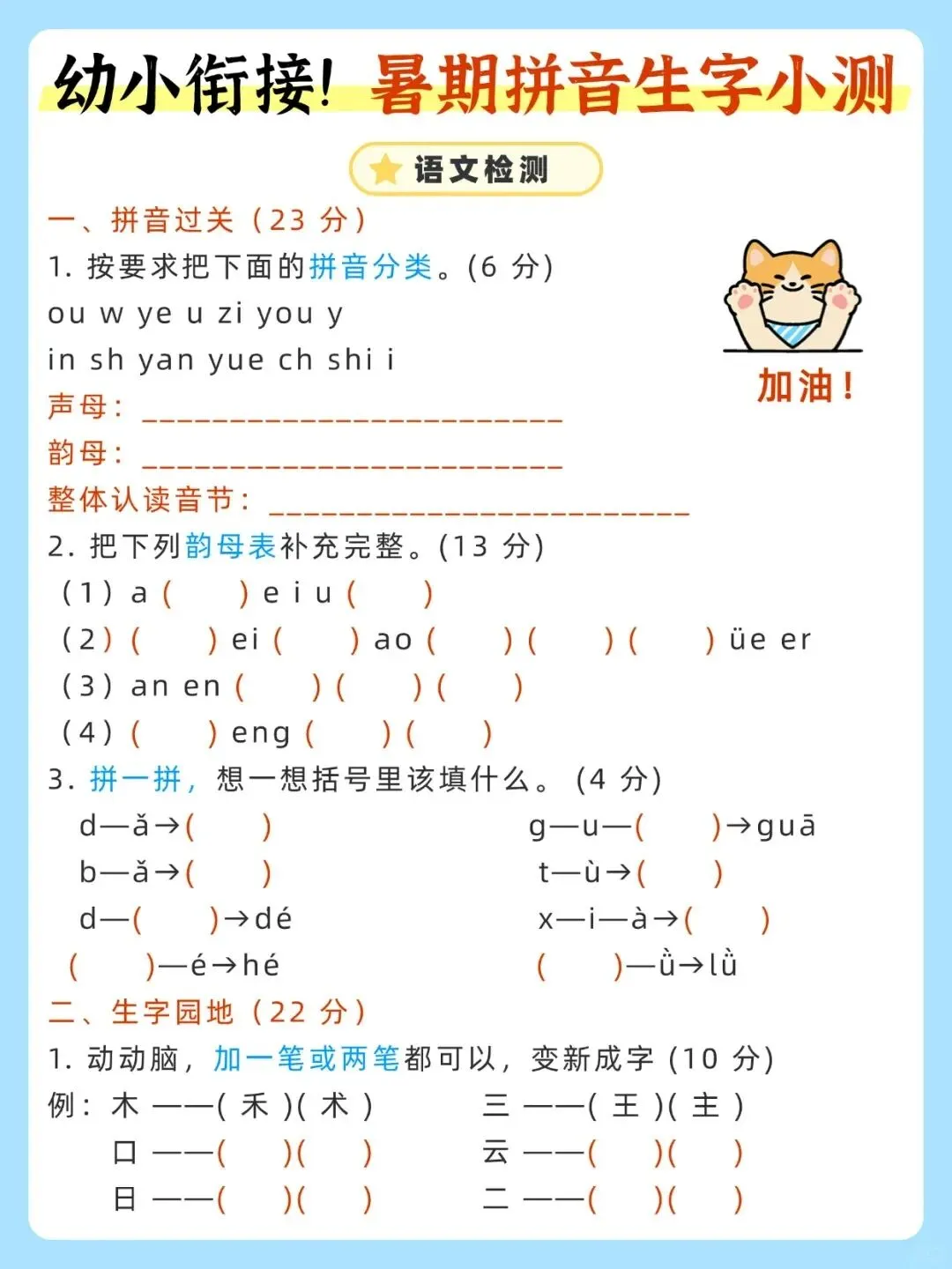 幼小衔接暑期拼音生字小测 |