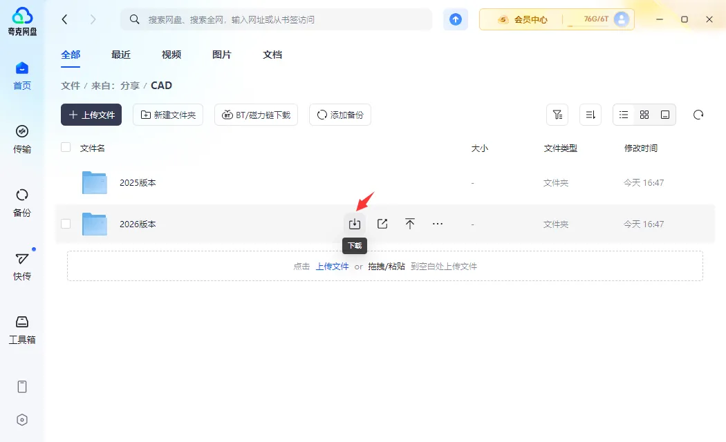 1.打开夸克网盘(没装有请先安装戳我跳转)
