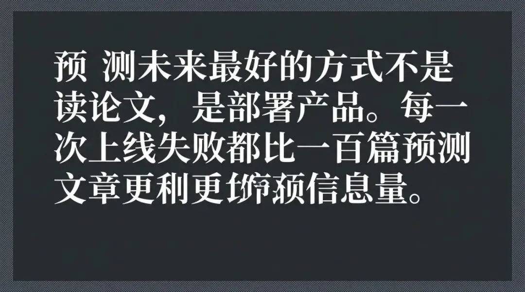 预测未来最好的方式不是读论文,是部署产品。每一次上线失败都比一百篇预测文章更有信息量。