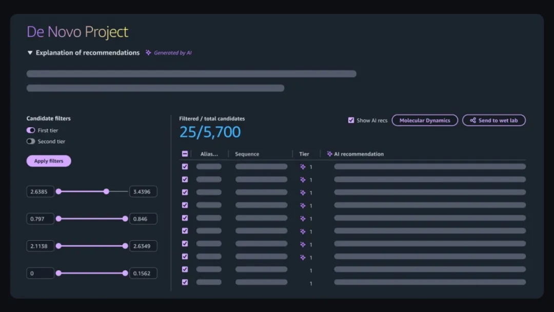 这款新应用名为 Amazon Bio Discovery,为研究人员提供一个生物学基础模型(foundation model)目录。AWS称,这些模型基于“海量”数据训练,可直接用于生成治疗性候选分子。目前平台已整合来自Apheris和Boltz等合作伙伴的开源和商业模型,Biohub与Profluent的模型也将陆续上线。