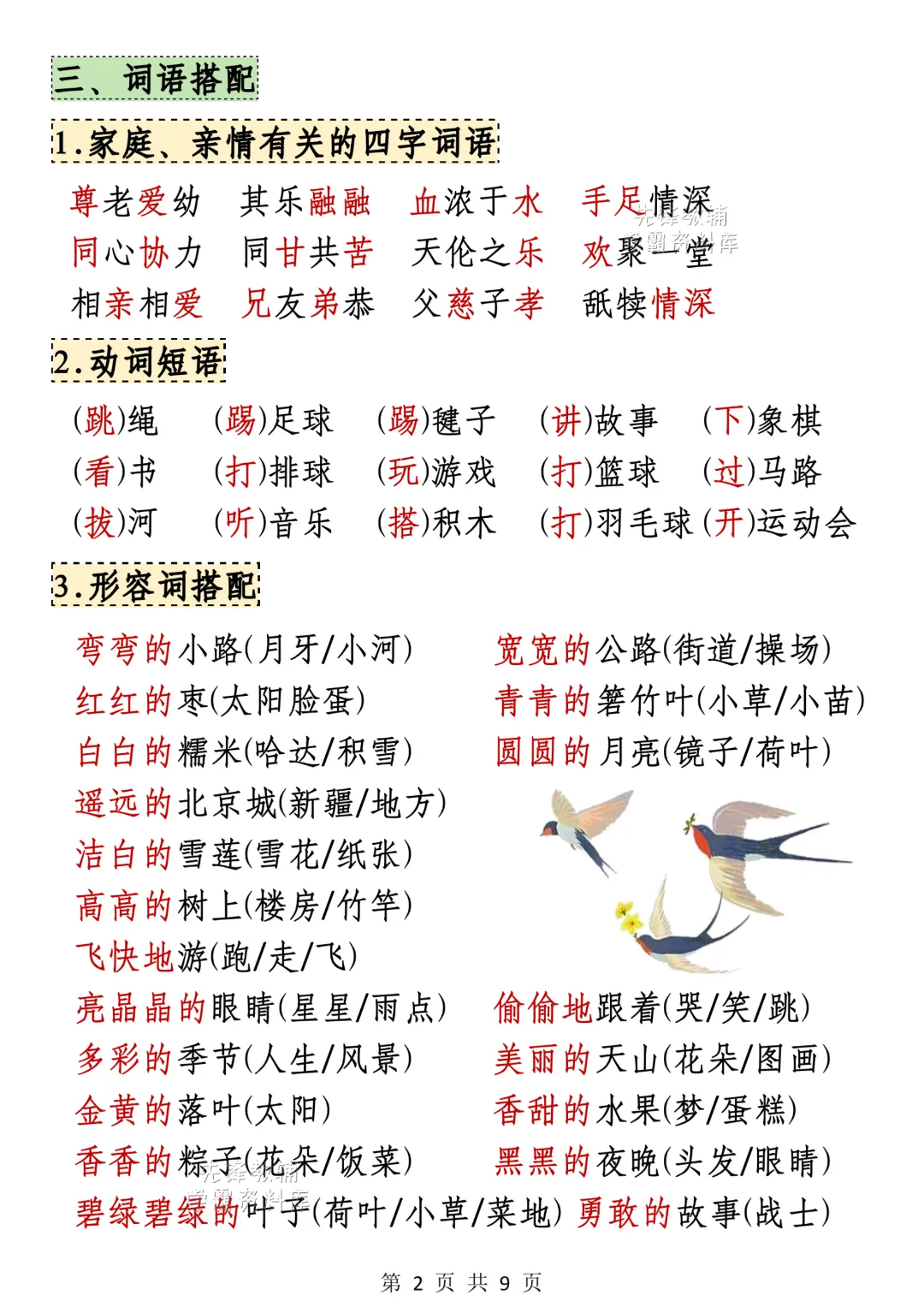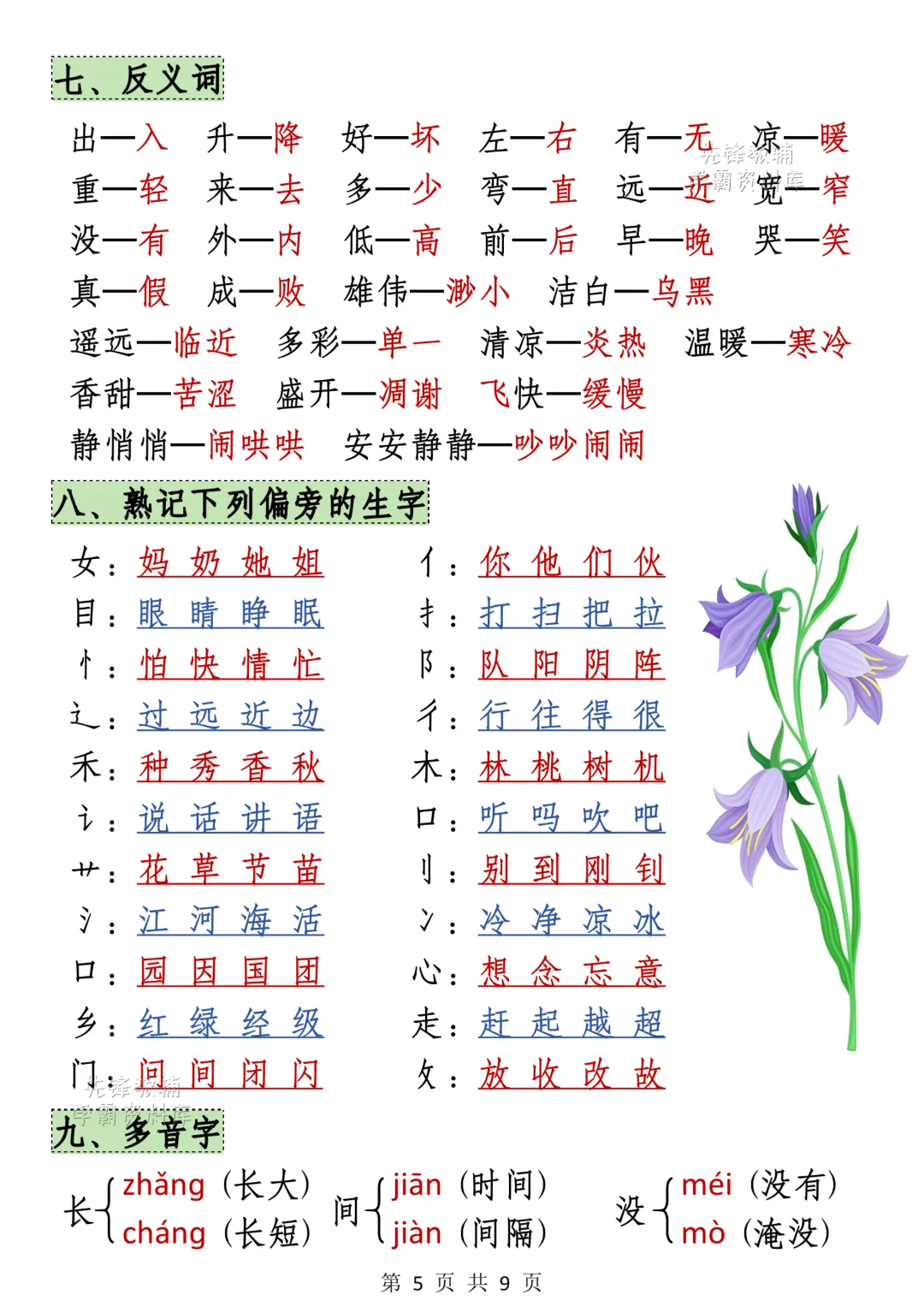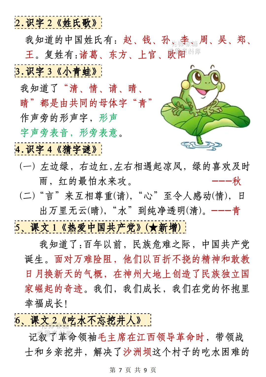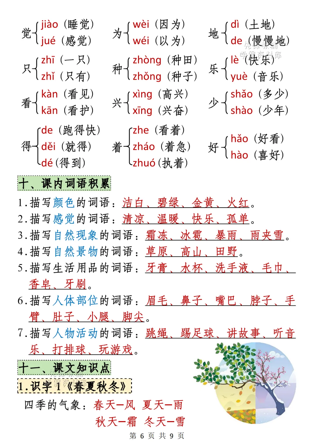 26年新《一年级下册语文期中知识点汇总》电子版可打印,全部背熟,期中稳拿高分!