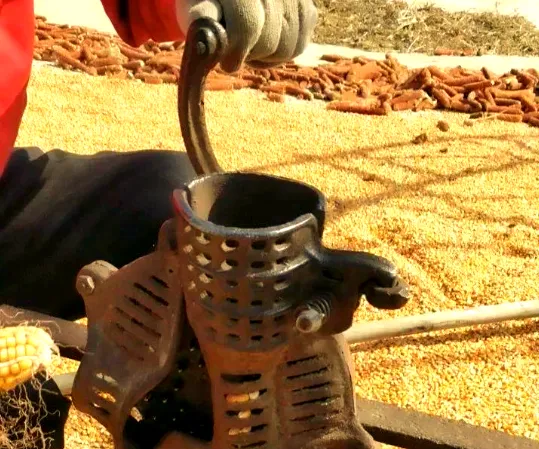 这个我小时候摇过,累得胳膊疼,但比用手搓玉米强多了,用手搓那个,手指头都能磨出泡来,把玉米棒子放进去,使劲摇手柄,齿轮转起来,玉米粒就哗啦哗啦往下掉,掉到下面的盆子里,摇的时候还得注意力度,太快了容易卡,太慢了效率又低,一般都是两个人配合,一个喂玉米一个摇,秋收那会儿天天摇,摇到看见玉米就烦。