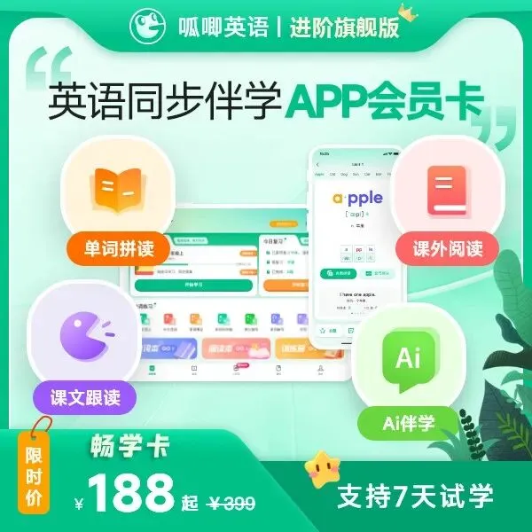 【课程名称】“呱唧英语”APP会员旗舰版【20年卡】
