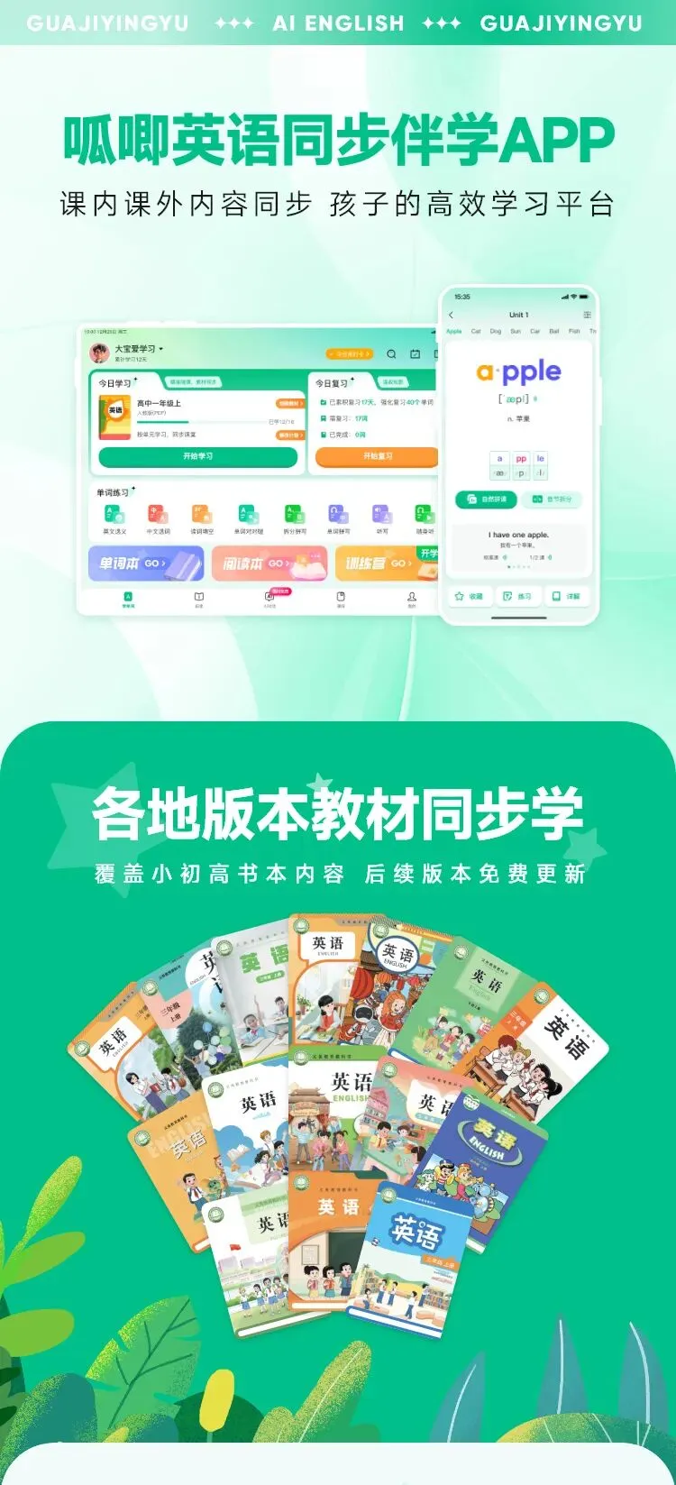 【课程包含】小、初、高各个年级版本词书全包括(后续版本免费更新)!新概念、剑桥、英语四六级、考研留学等课内课外全套资源!自然拼读速记单词,单词专项突破训练,海量课外阅读拓展