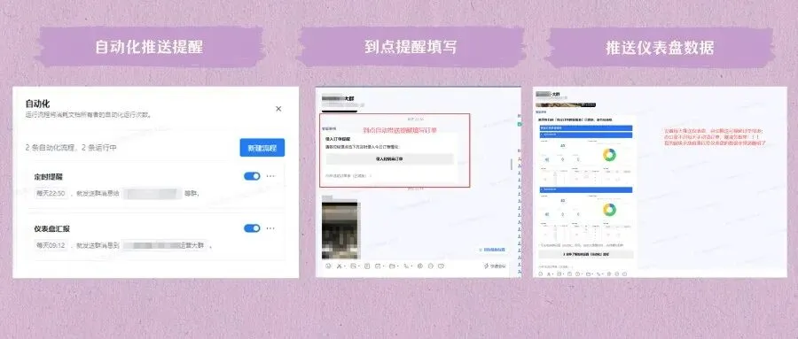 2、智能提醒:设置自动化流程,定时@区域负责人填写,不用再当“人肉闹钟”。