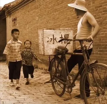 图中骑着车拉着木箱的,正是小时候小区巷口常见的自行车冰棍箱,一箱写着“冰棍”大字,每天午后就晃到巷口,一帮小孩追在后头,兜里五分钱一毛钱,非得挤到前头买根嘎吱脆,那冰箱盖一掀冷气扑脸,售货大哥还喜欢哄人:“小心别咬着牙”,味道很简单,凉到骨头里,现在冷饮琳琅满目,没人再追着车跑了,小时候的夏天就全在这箱冰棍里头了。